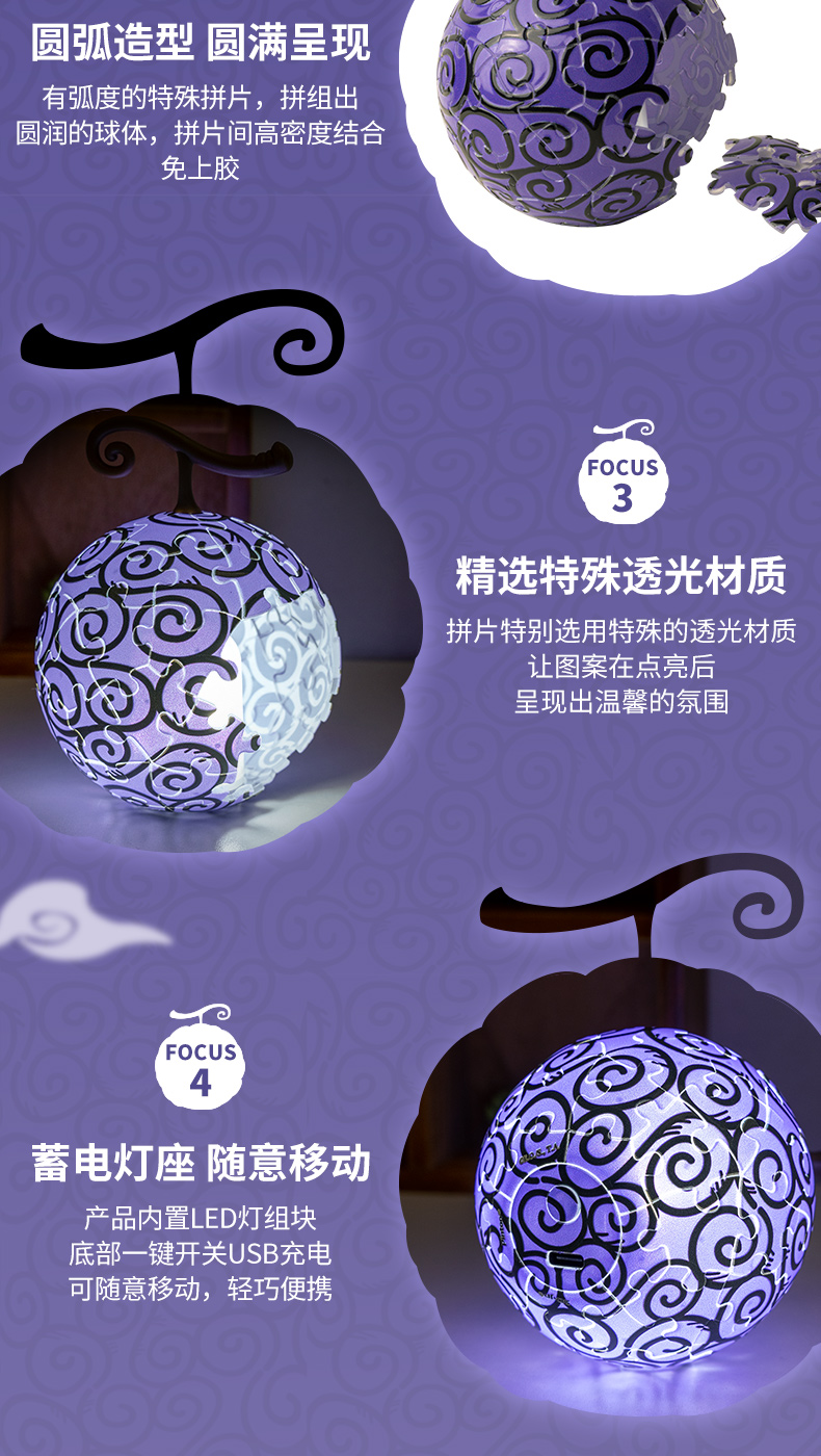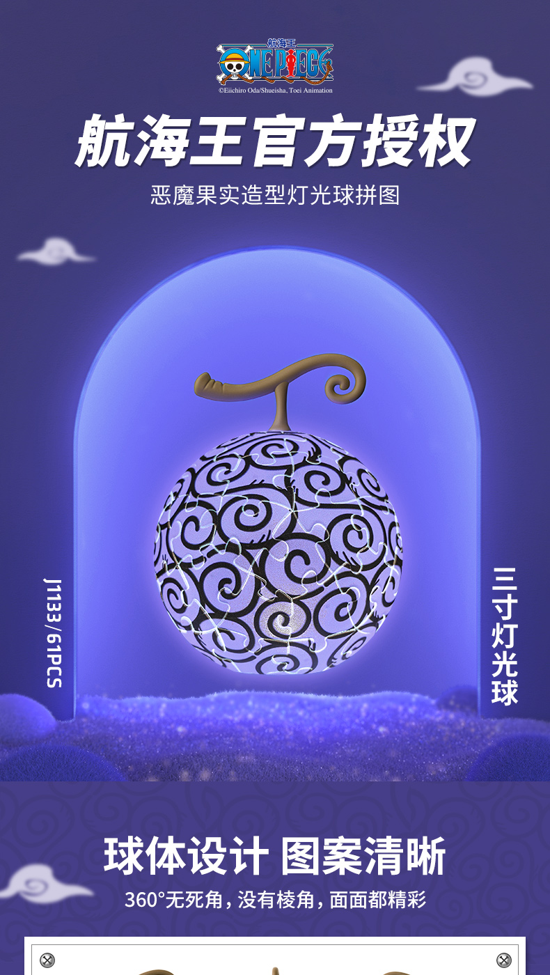 3寸61片灯光球拼图 J1133 ONE PIECE-恶魔果实
