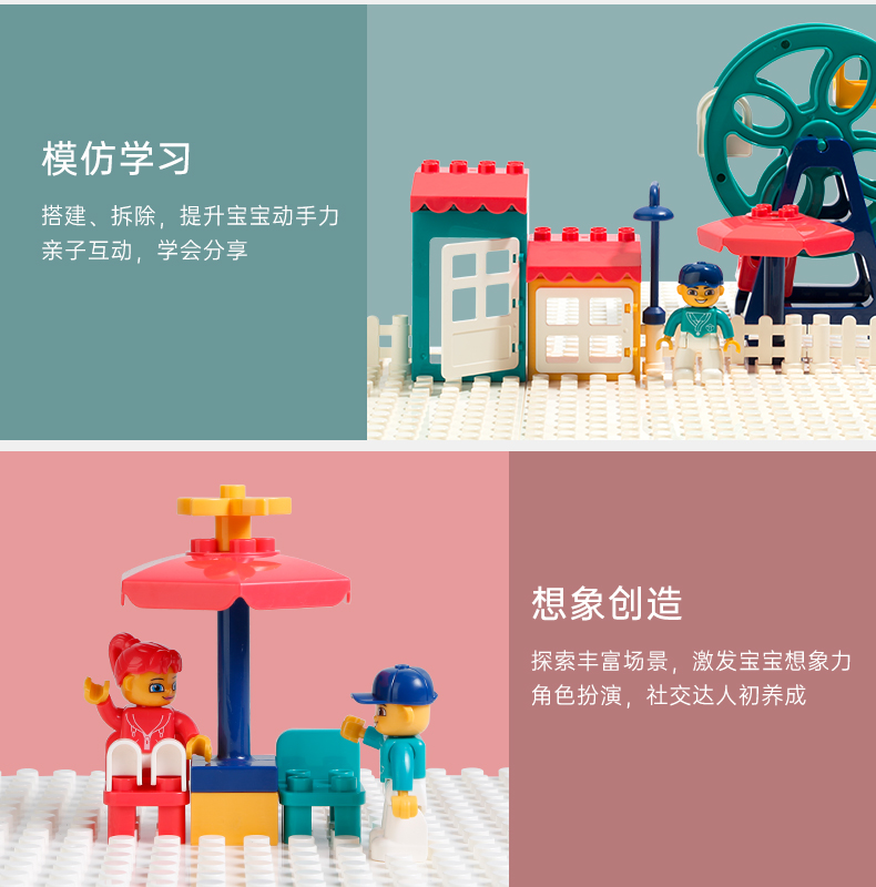 | 颜色分类: 【116颗积木】警察(送底板) 【176颗积木】丛林探险(送底板颜色随机) 【220颗积木】苹果谷乐园(送底板) ❤❤❤❤搭积木桌更有趣❤❤❤❤ 【1桌1椅】116颗尼达警察积木组合 【1桌2椅】116颗尼达警察积木组合 【1桌1椅】176颗巴卡丛林积木组合 【1桌2椅】176颗巴卡丛林积木组合 【1桌1椅】220颗苹果谷乐园积木组合 【1桌2椅】220颗苹果谷乐园积木组合 百变造型 脑洞大开 |