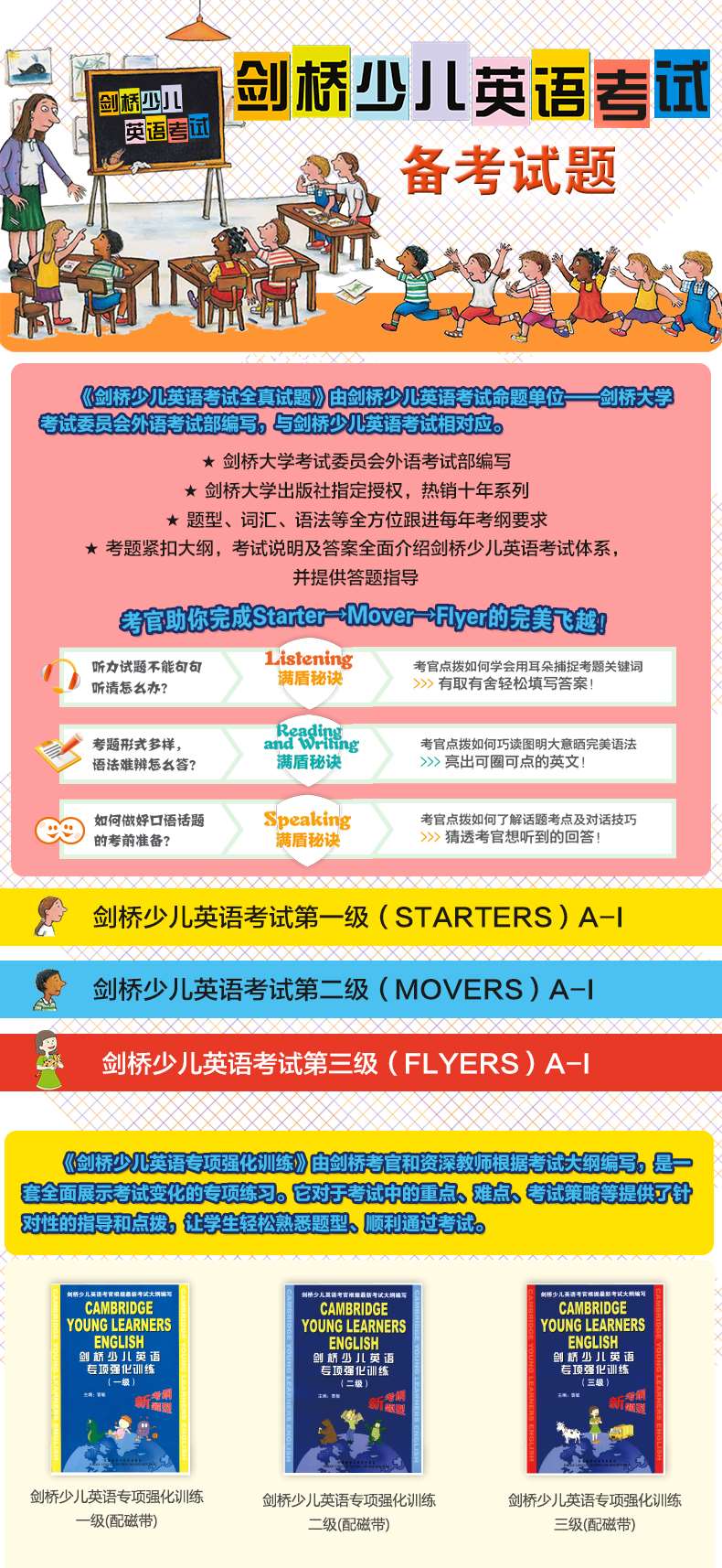 更多剑桥剑桥少儿英语考试全真试题系列套装请见:剑桥少儿英语考试全真试题**级4册套装(*)剑桥少儿英语考试全真试题第二级4册套装(*)剑桥少儿英语考试全真试题第三级4册套装(*)