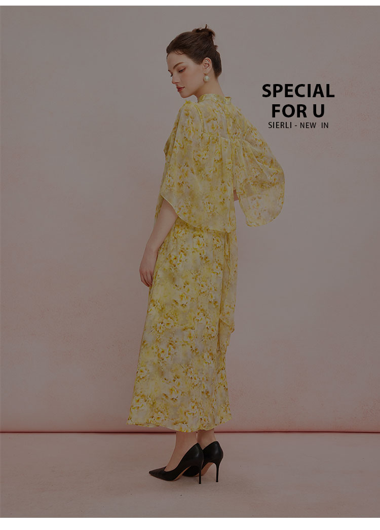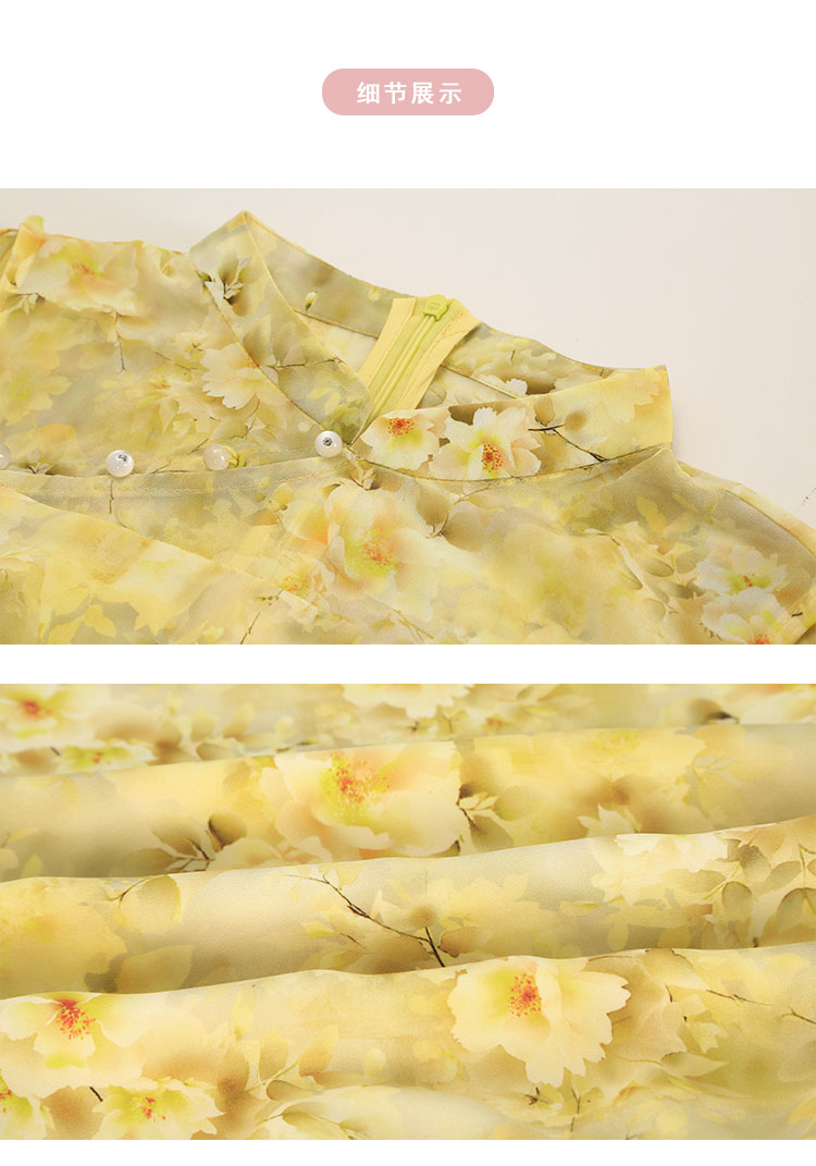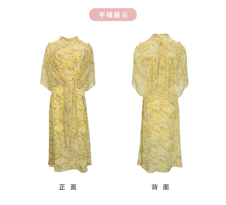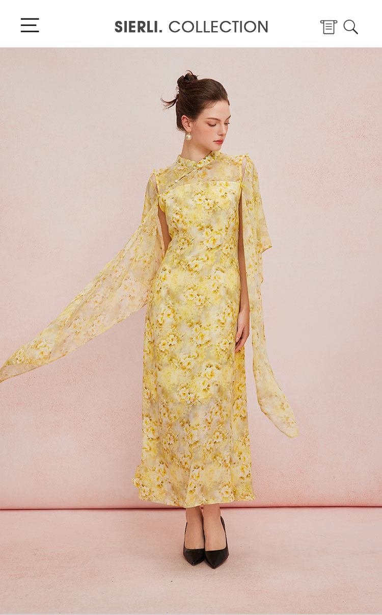 QF888斯尔丽2025新款法式浪漫轻奢印花改良旗袍薄纱多样穿搭披肩连衣裙