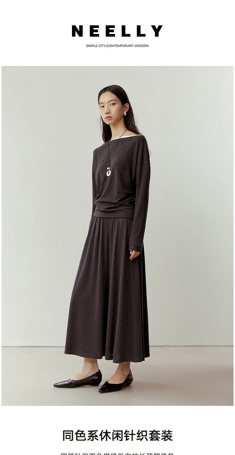 NEELLY纳俪商场同款春新款复古休闲针织套装女垂感柔润系两件套N26023Z01099