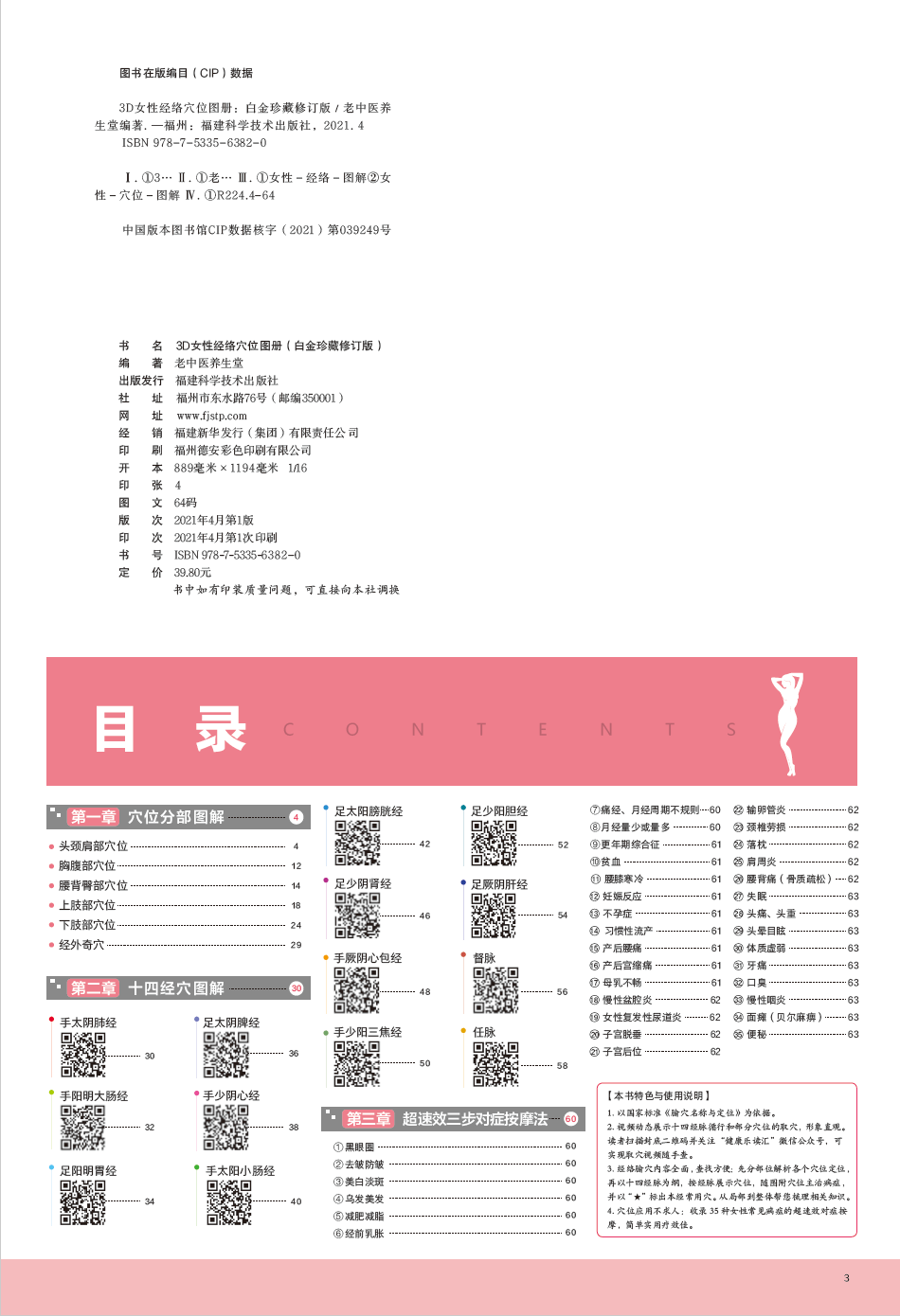 本书以国家标准《腧穴名称与定位》为依据,先分部位解析各个穴位定位,再以十四经脉展示穴位,并附穴定位和主治病症说明,并以“★”标出本经常用穴。本书结合视频动态展示十四经脉循行和部分穴位的取穴,形象直观,并收录35种女性常见病症的超对症按摩,简单实用疗效佳。