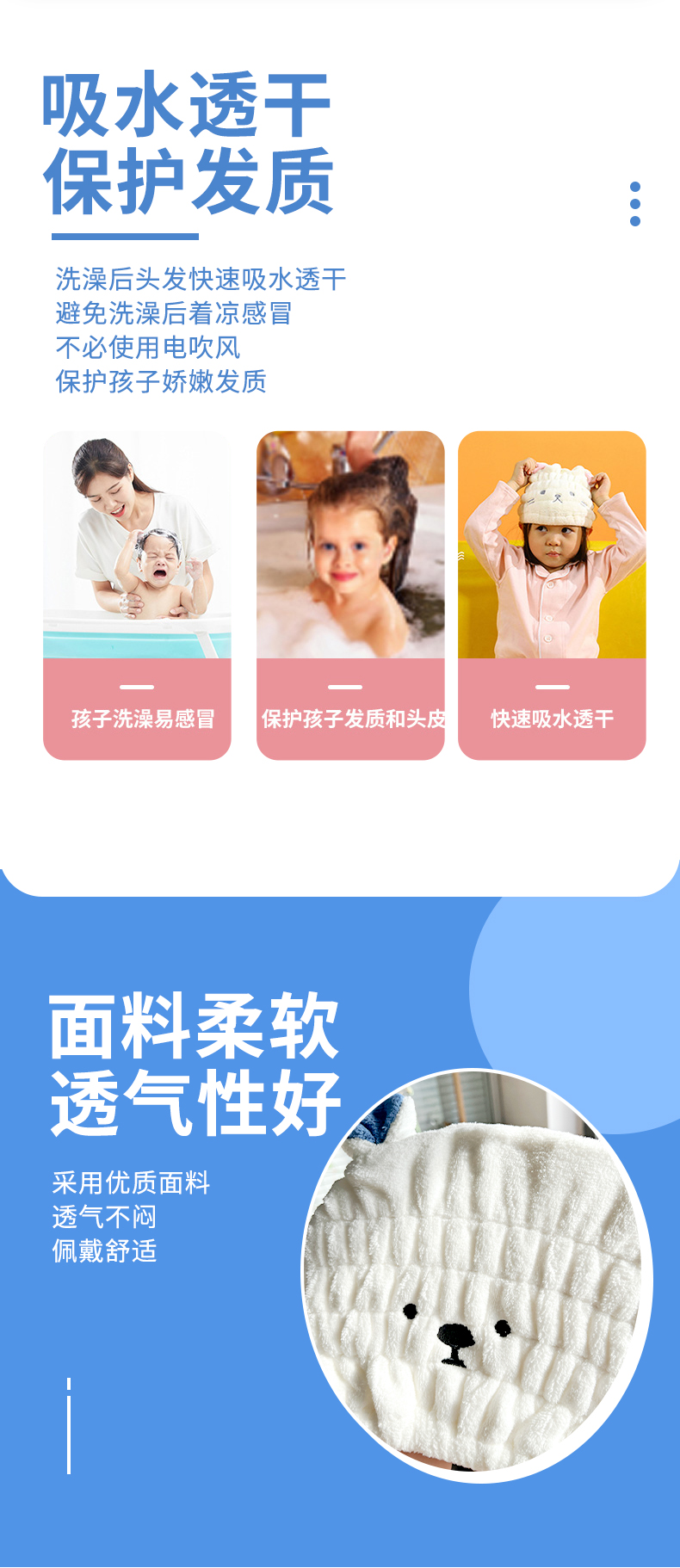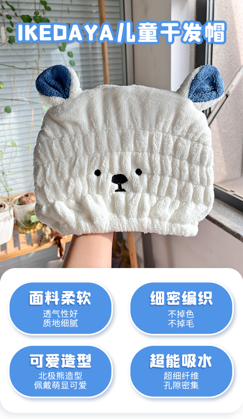 IKEDAYA儿童干发帽透气萌宠冬季超强吸水速干加厚可爱宝宝婴儿