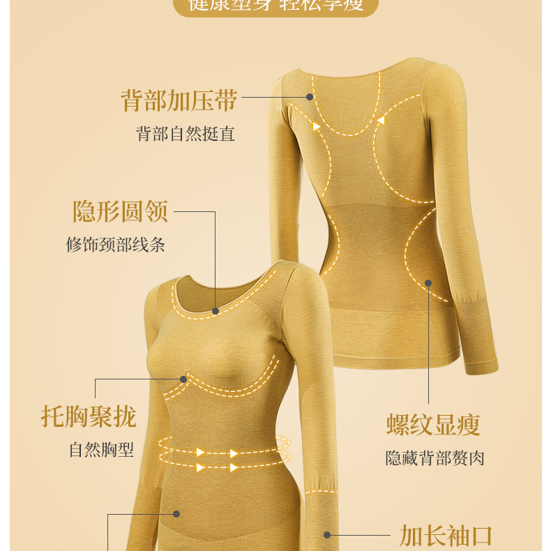 【轻薄发热德绒保暖衣套装】收腹紧身 塑身美体 轻薄不臃肿 隐形背背佳 收腹提臀 无痕隐身蓄热保暖 秋衣秋裤套装