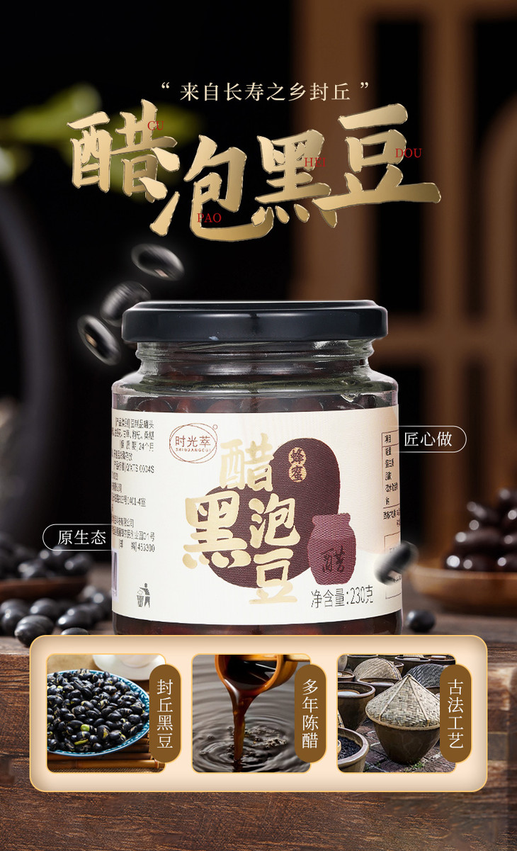 河南封丘特产 醋泡黑豆 古法炮制 酸甜软糯 改善亚健康 每天2勺 食疗养生 230g/瓶