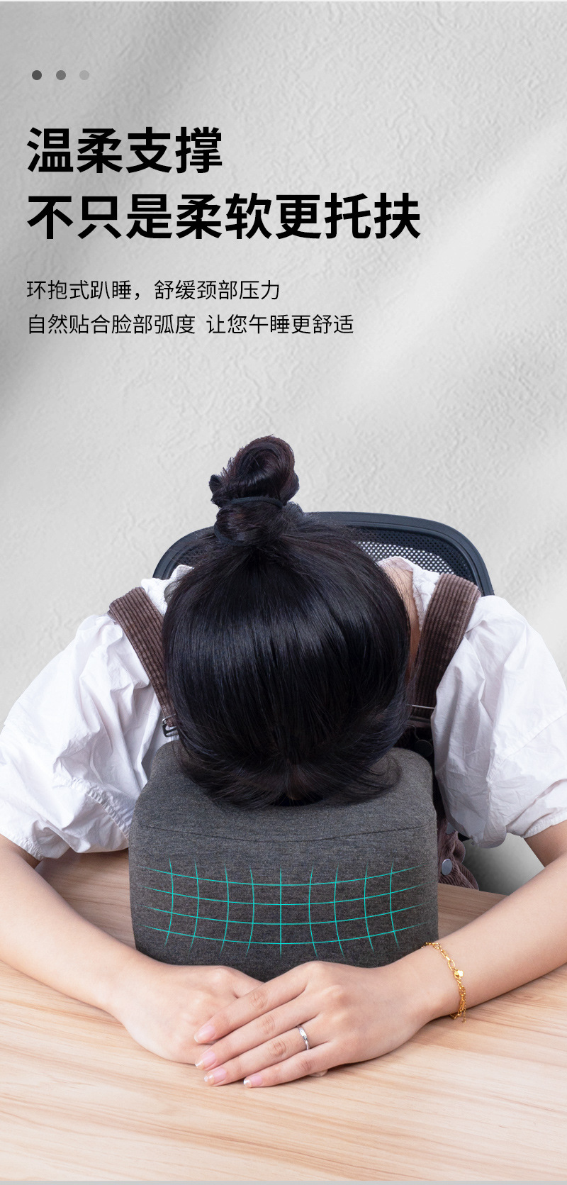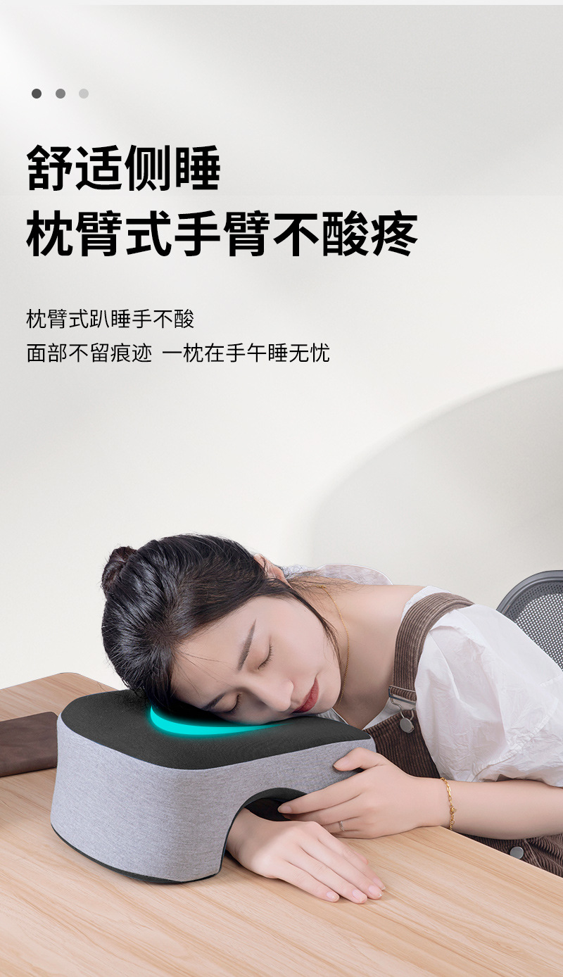 【舒适午睡,手臂不再痛】冰丝记忆棉午睡枕 曲线贴合面部 柔软透气 不压手臂 易拆卸好清洗