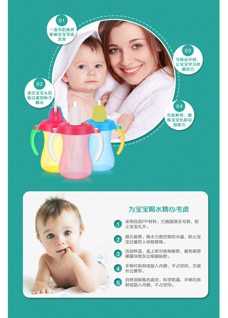 【一般贸易】日本贝亲pigeon宝宝学饮杯吸管杯带柄 150ml 蓝色