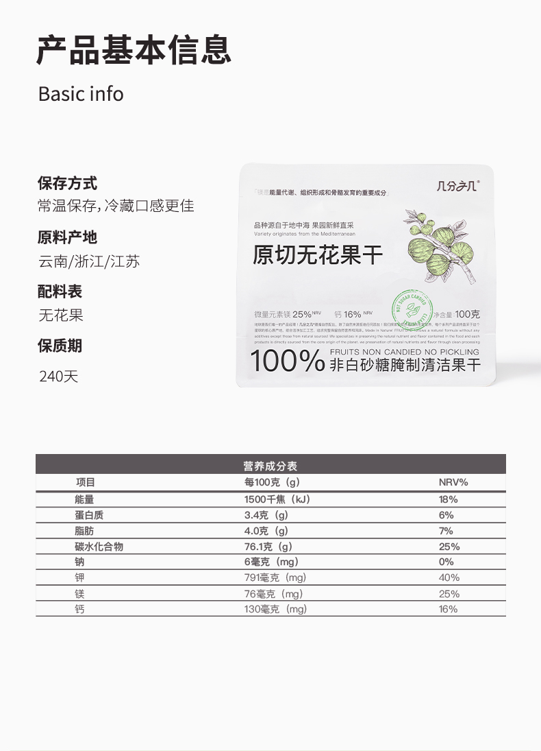 几分之几 原切无花果干 100g*2