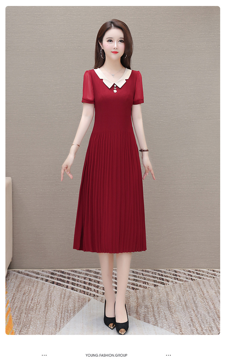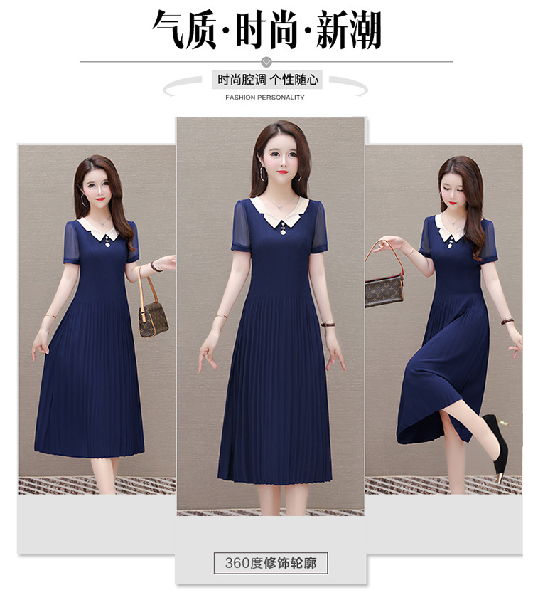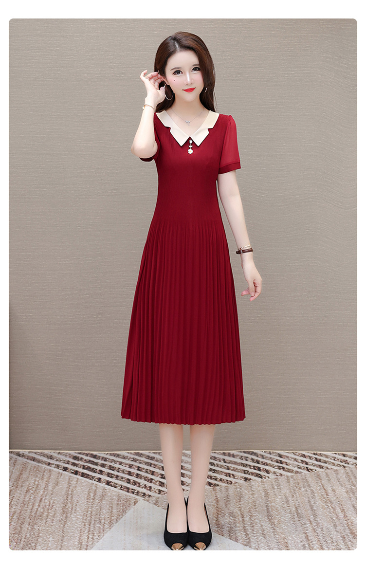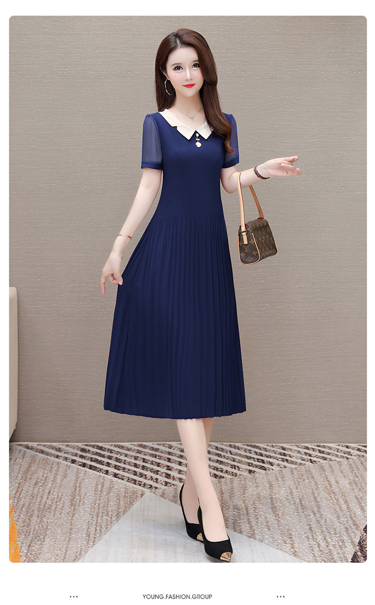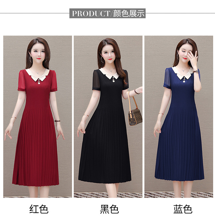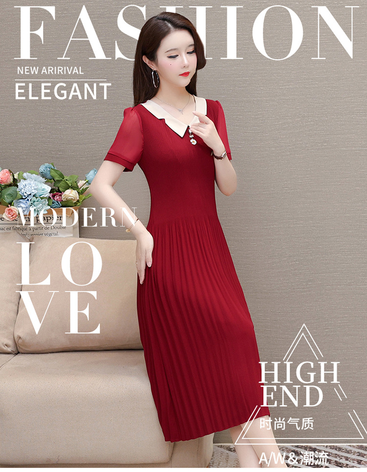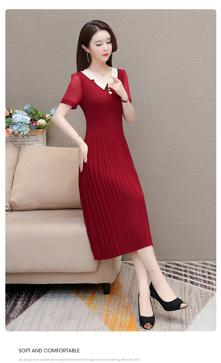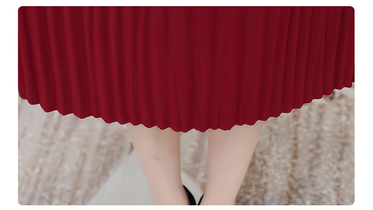 时尚优雅连衣裙,百褶裙中长款纯色A字裙QYM- LRX-YMS2425-Y