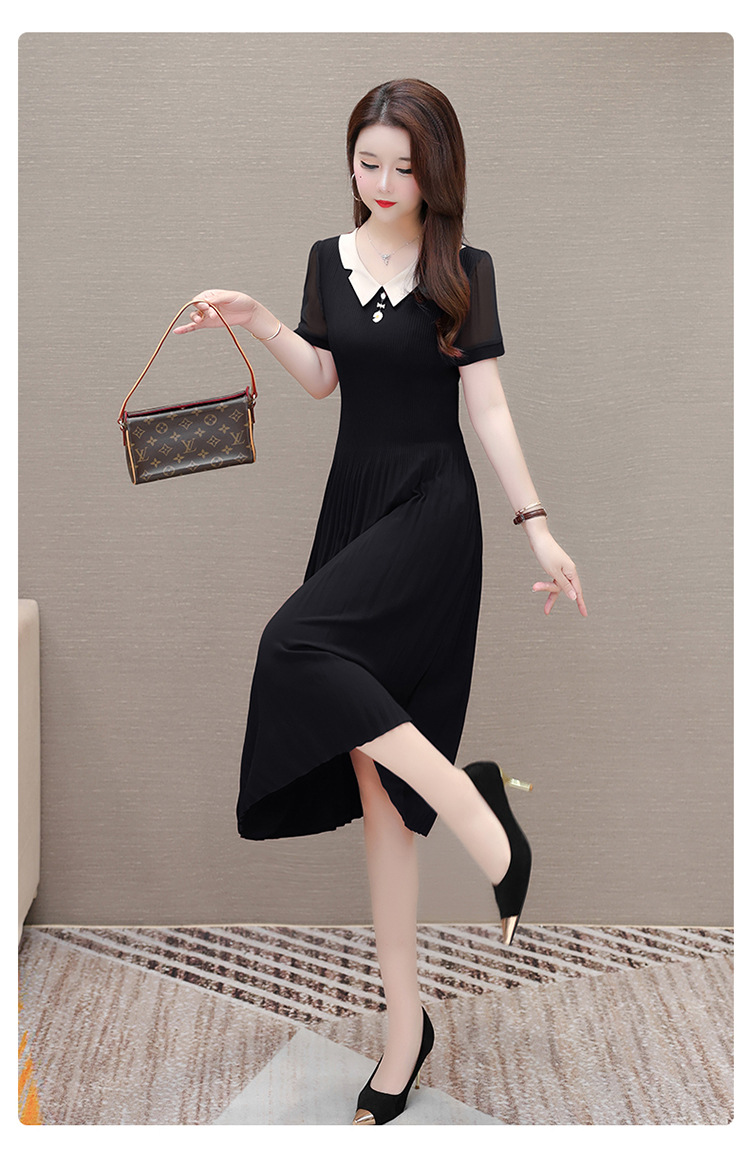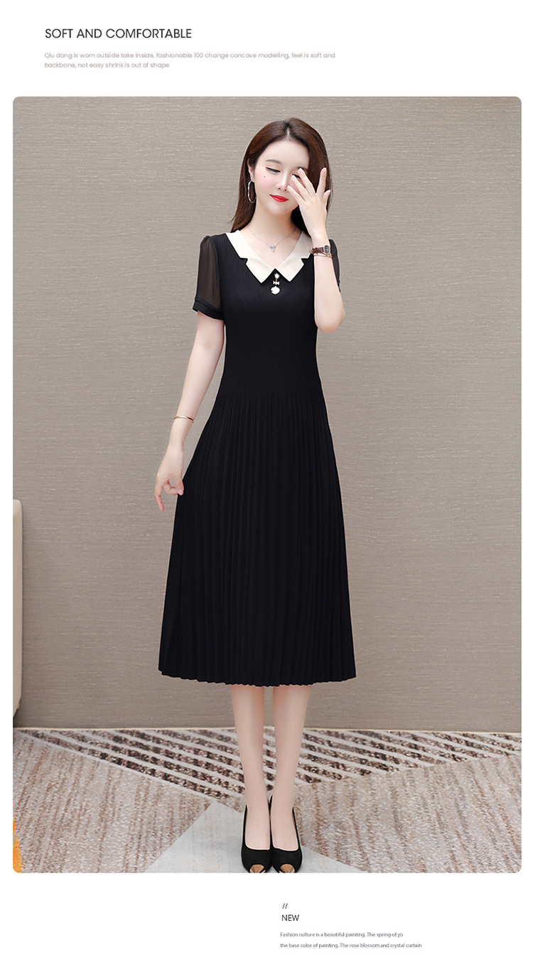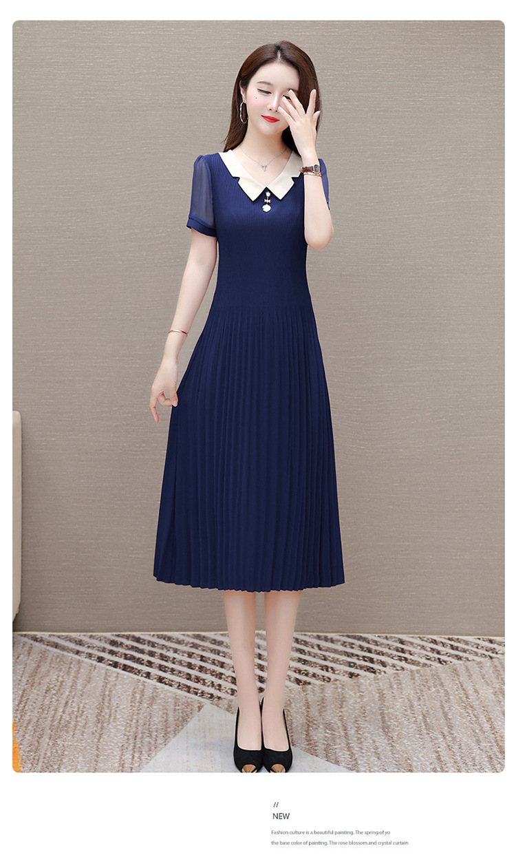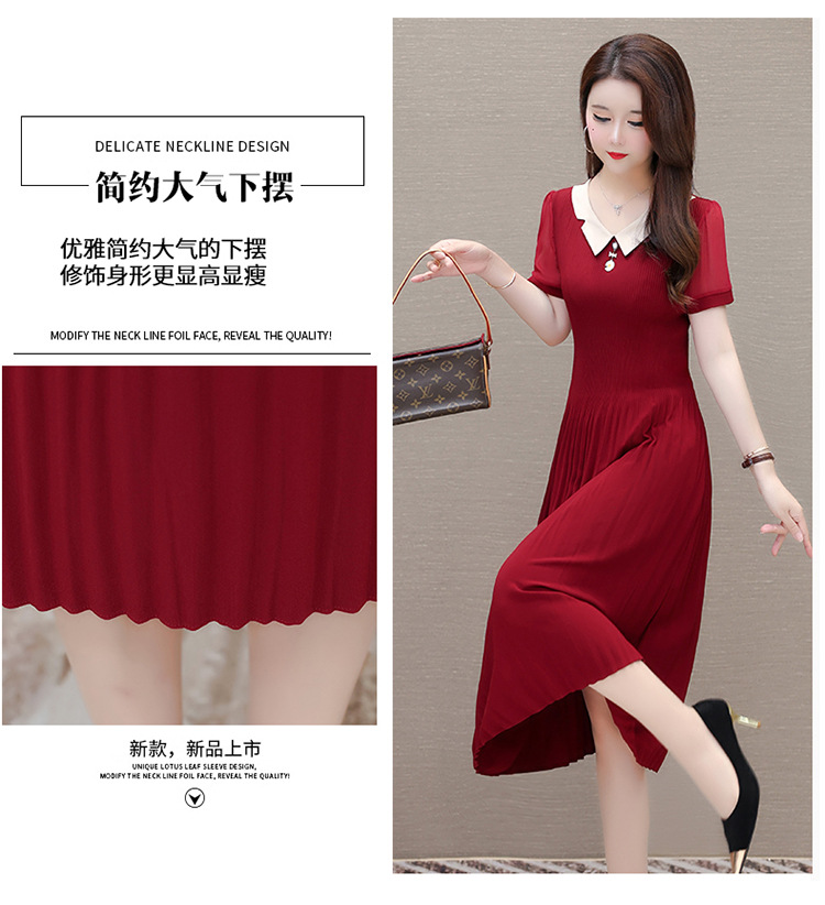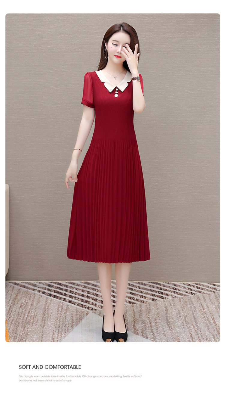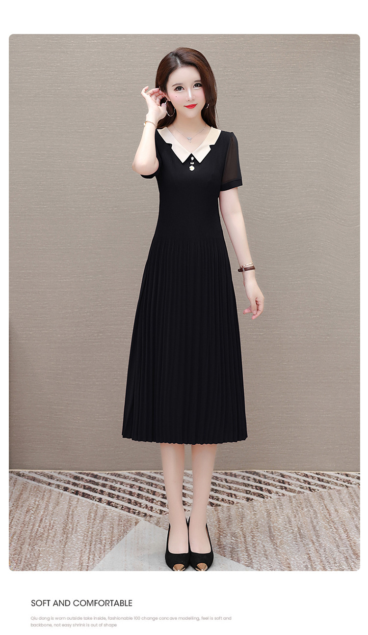 时尚优雅连衣裙,百褶裙中长款纯色A字裙QYM- LRX-YMS2425-Y