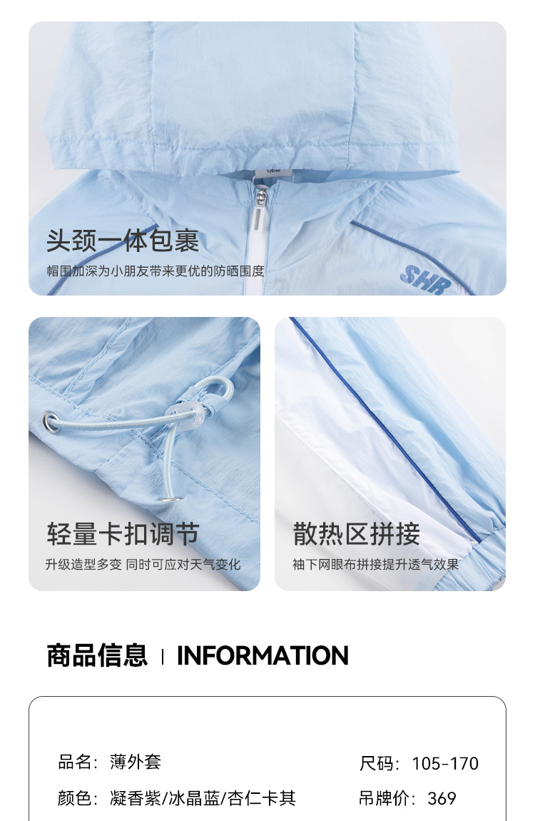 水孩儿童装夏季新款儿童轻户外防晒外套男童轻薄透气拉链衫女童时尚连帽上衣
