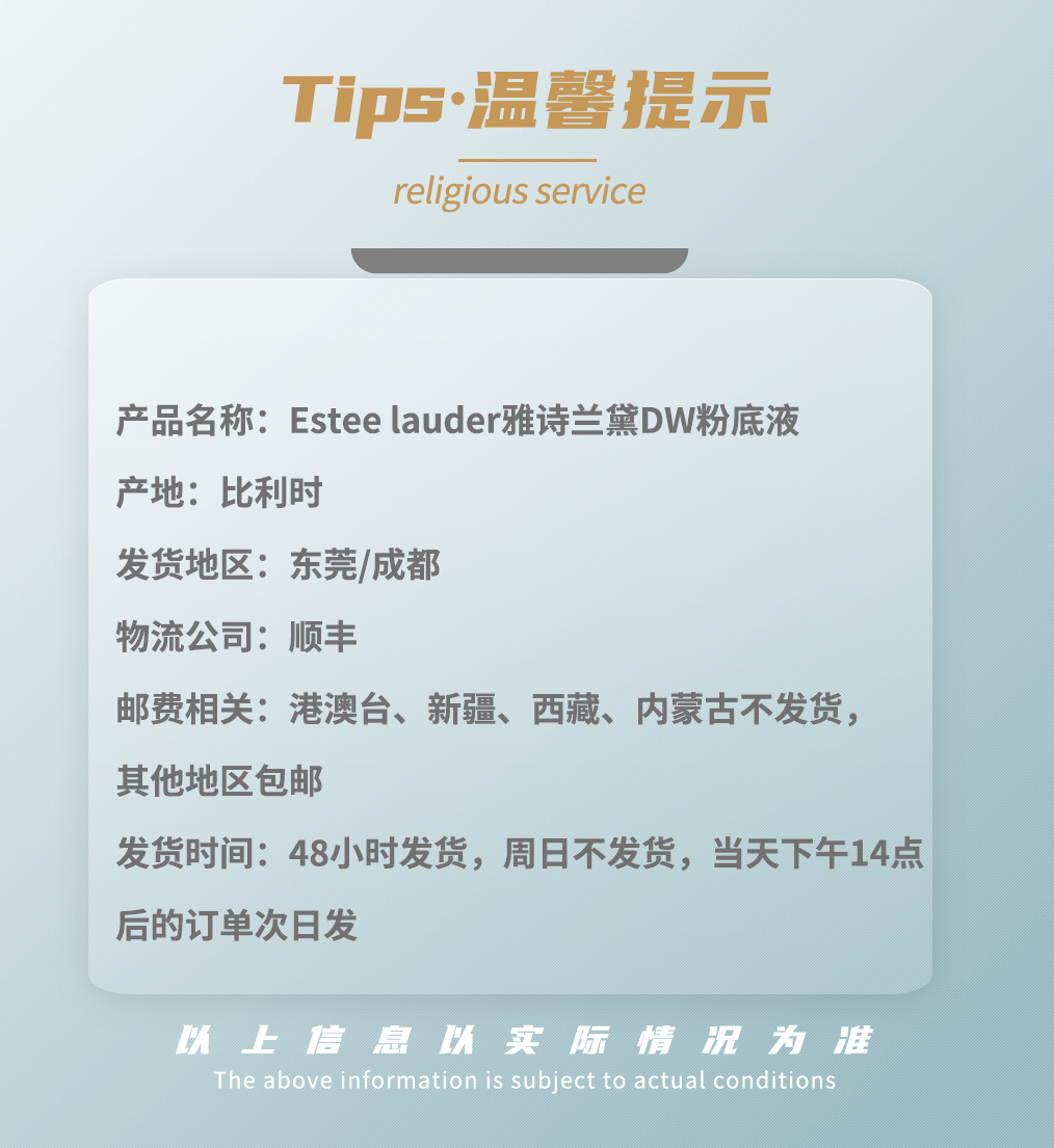Estee lauder雅诗兰黛DW粉底液 控油保湿 提亮遮瑕 持久不脱妆 30ml/瓶