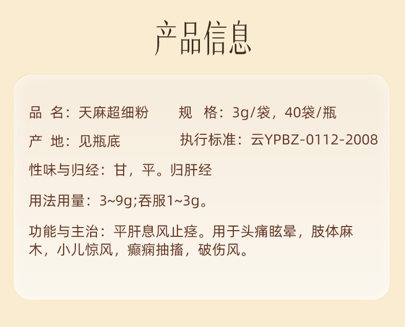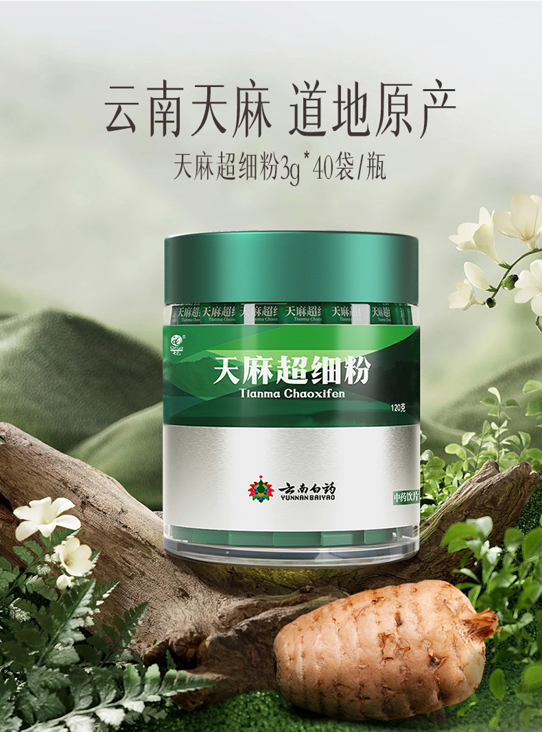 【官方正品】云南白药七花天麻超细粉3g*40袋便携条包装道地中药材昭通天麻打细粉好吸收