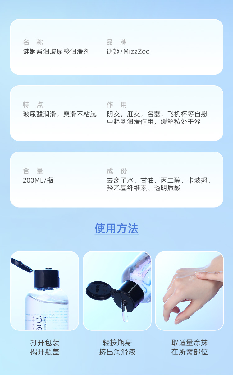 谜姬 盈润玻尿酸润滑剂 大容量润滑液 可舔 润滑油 人体润滑剂 成人用品水溶性润滑液成人
