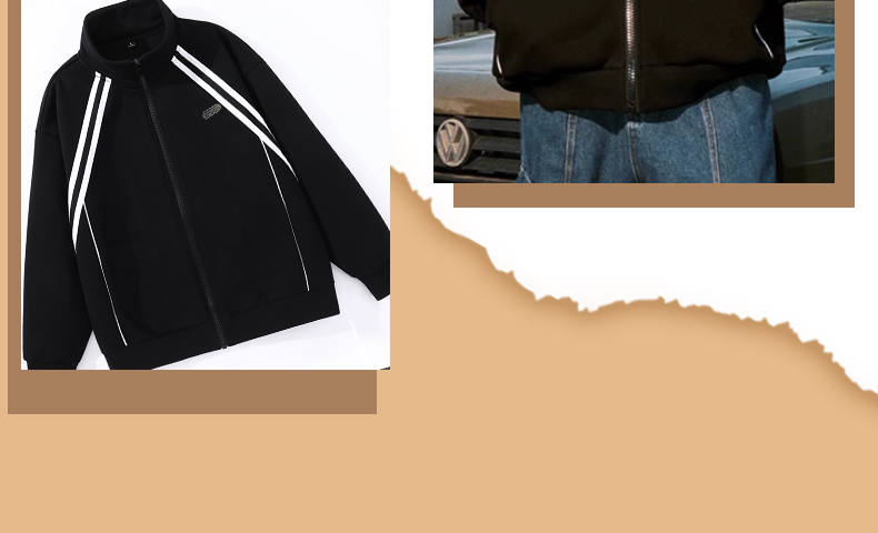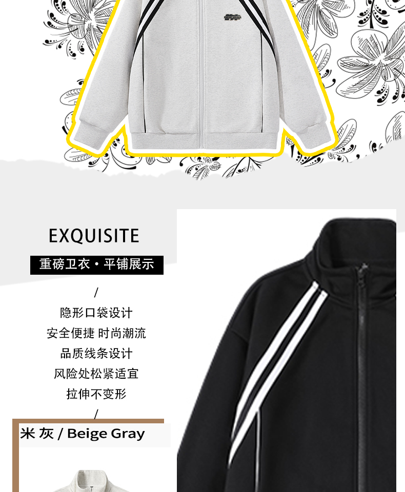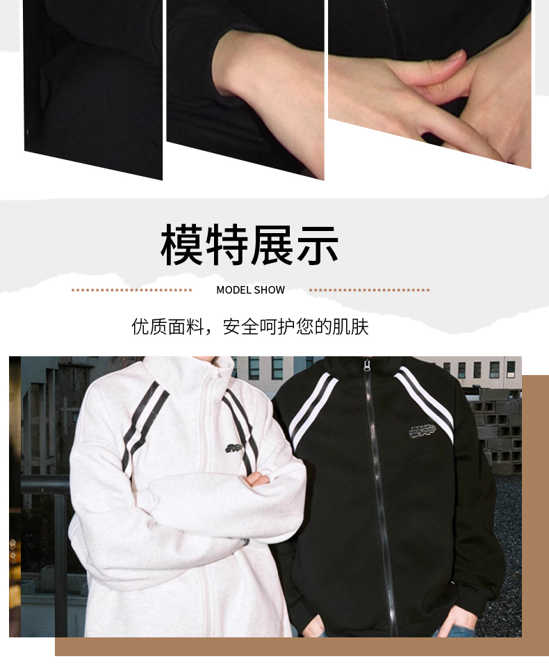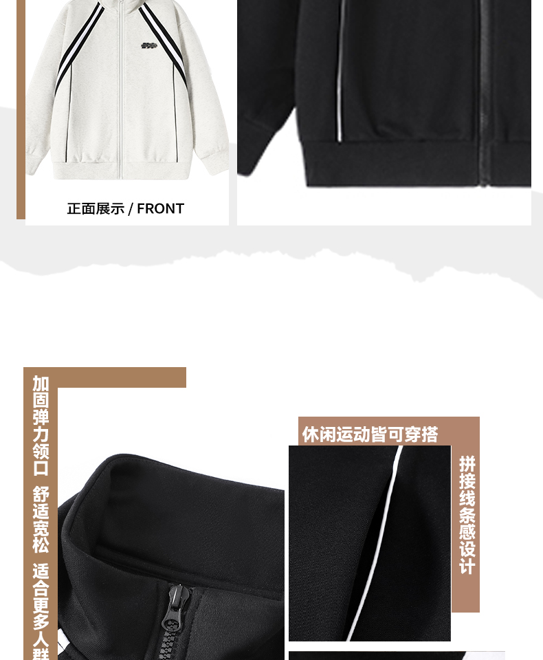 的幸美式撞色拉链立领卫衣男女宽松开衫春季高级感外套上衣