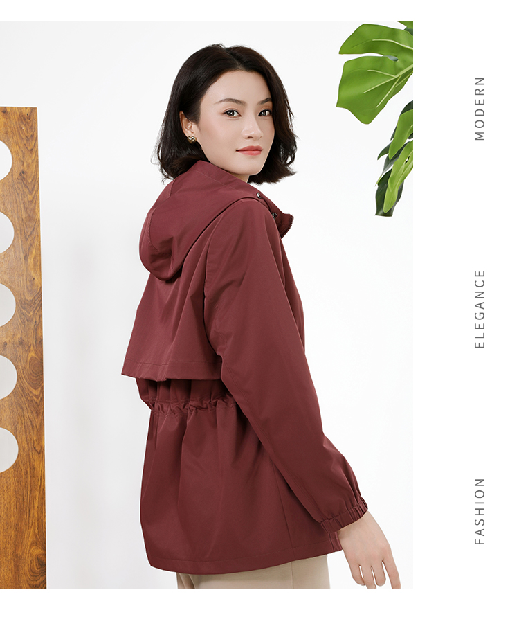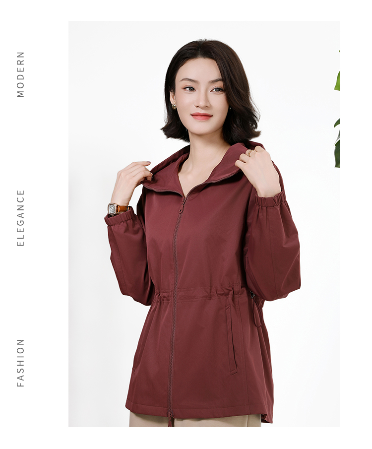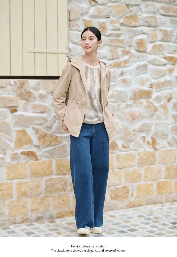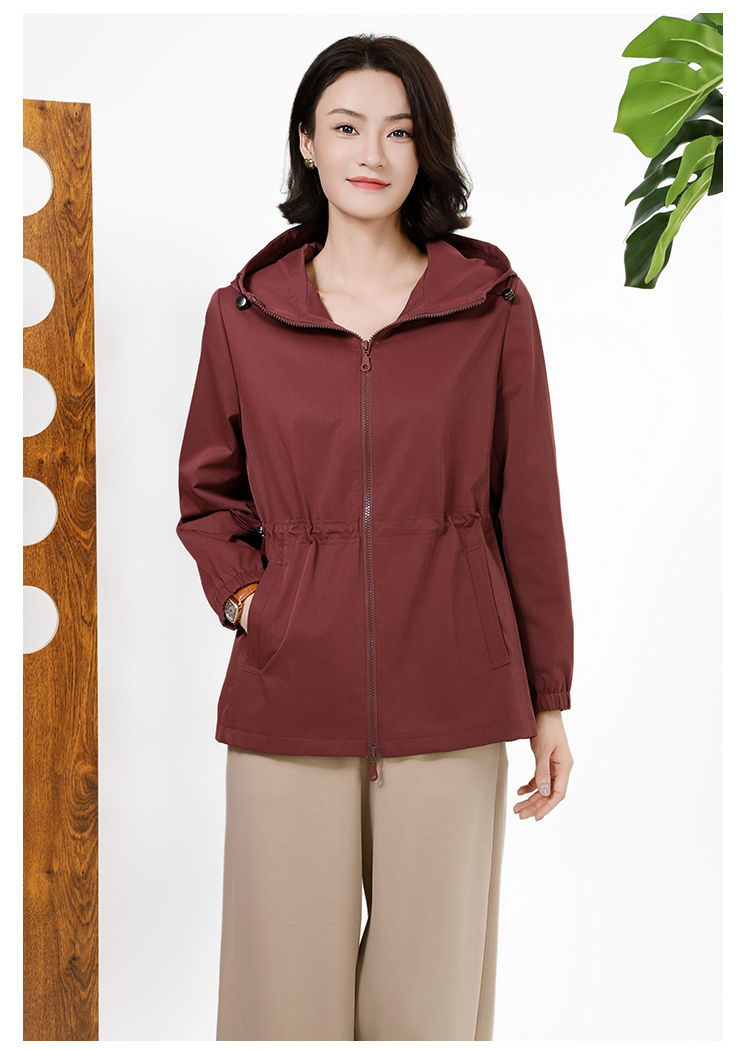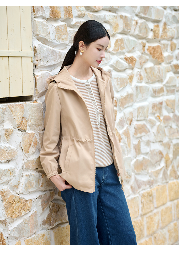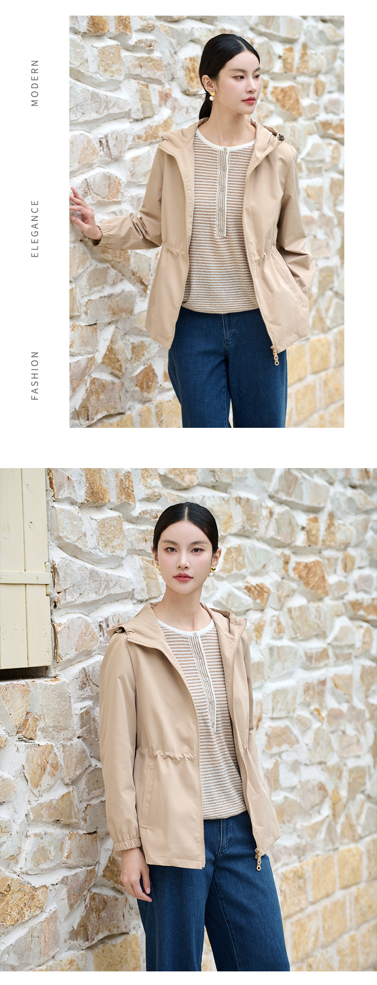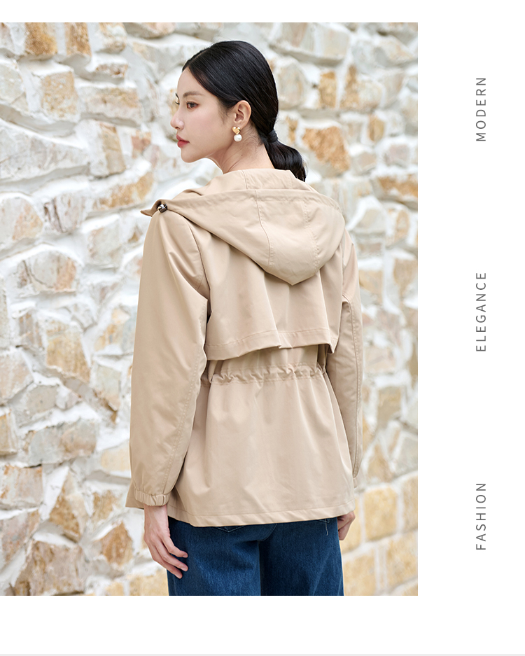 佐尔美经典气质松紧腰连帽百搭风衣外套女M43FD27