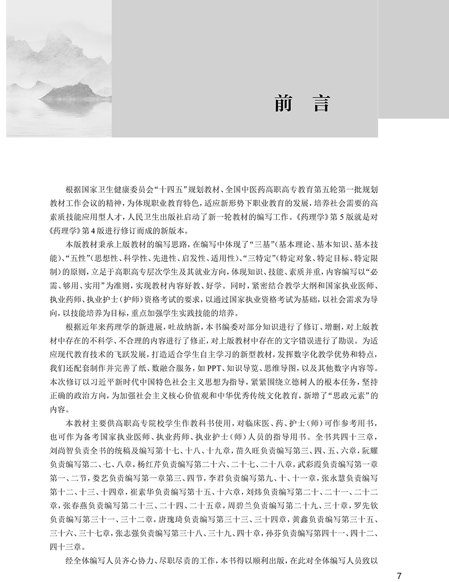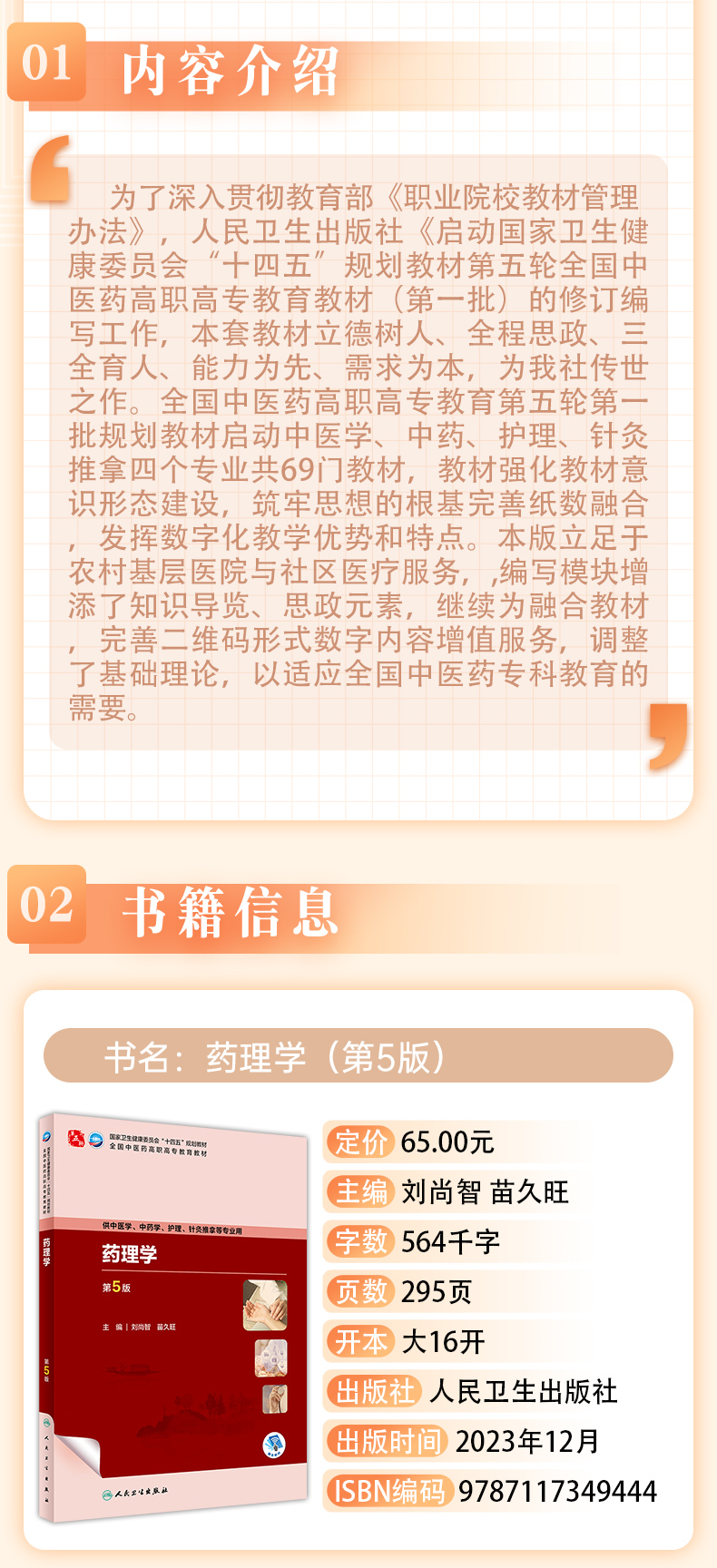 药理学 第5版 全国中医药高职高专教育教材 十四五规划教材 供中医学 中药学 护理 针灸推拿等专业 人民卫生出版社9787117349444