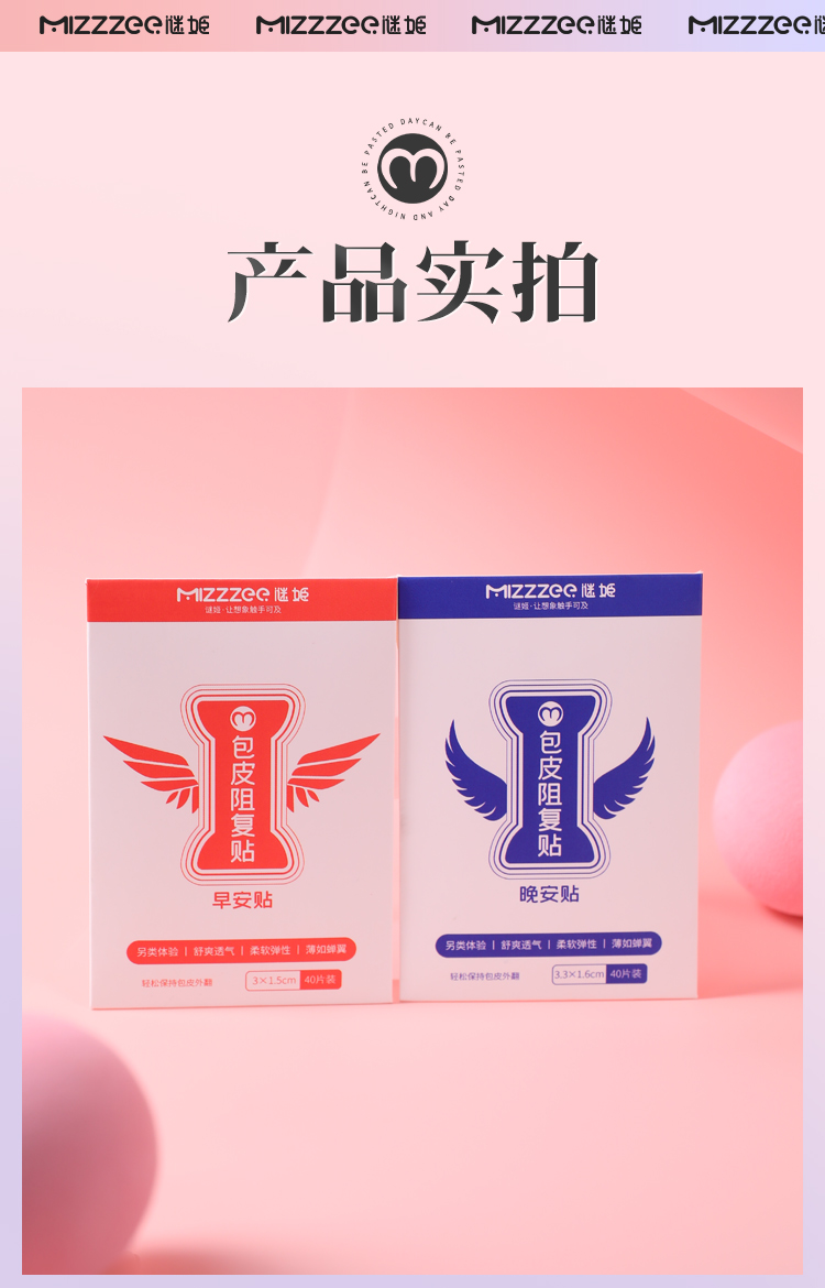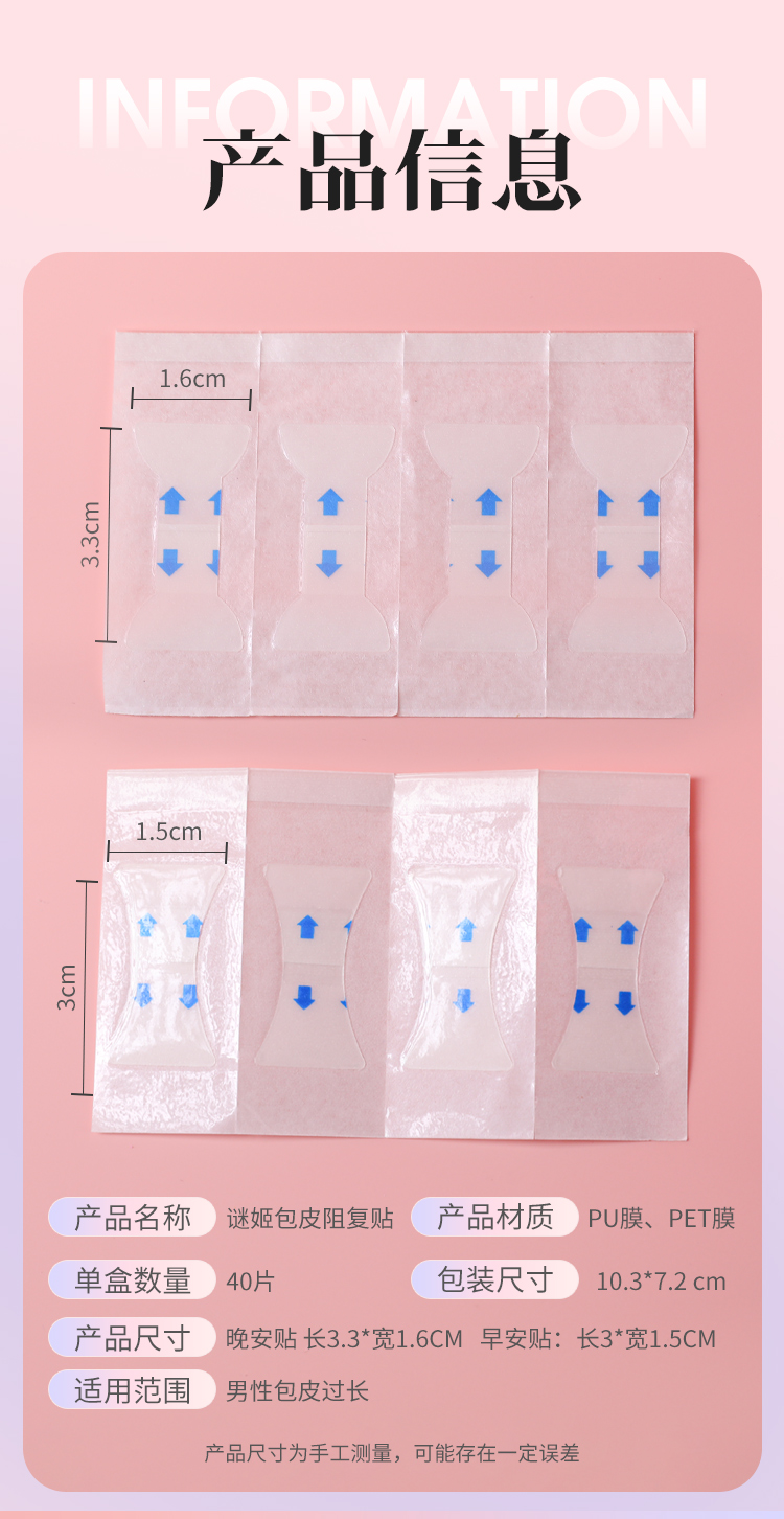 谜姬 包皮阻复贴 包皮过长神器包皮外翻器成人情趣性用品玩具 (早安/晚安)1盒/40片