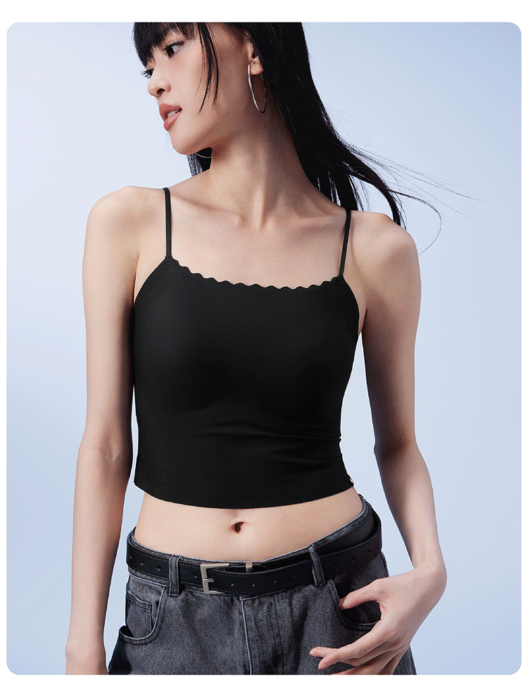 半练无痕花纹边平口吊带TA066 带胸垫舒适内搭细肩带遮副乳可外穿背心