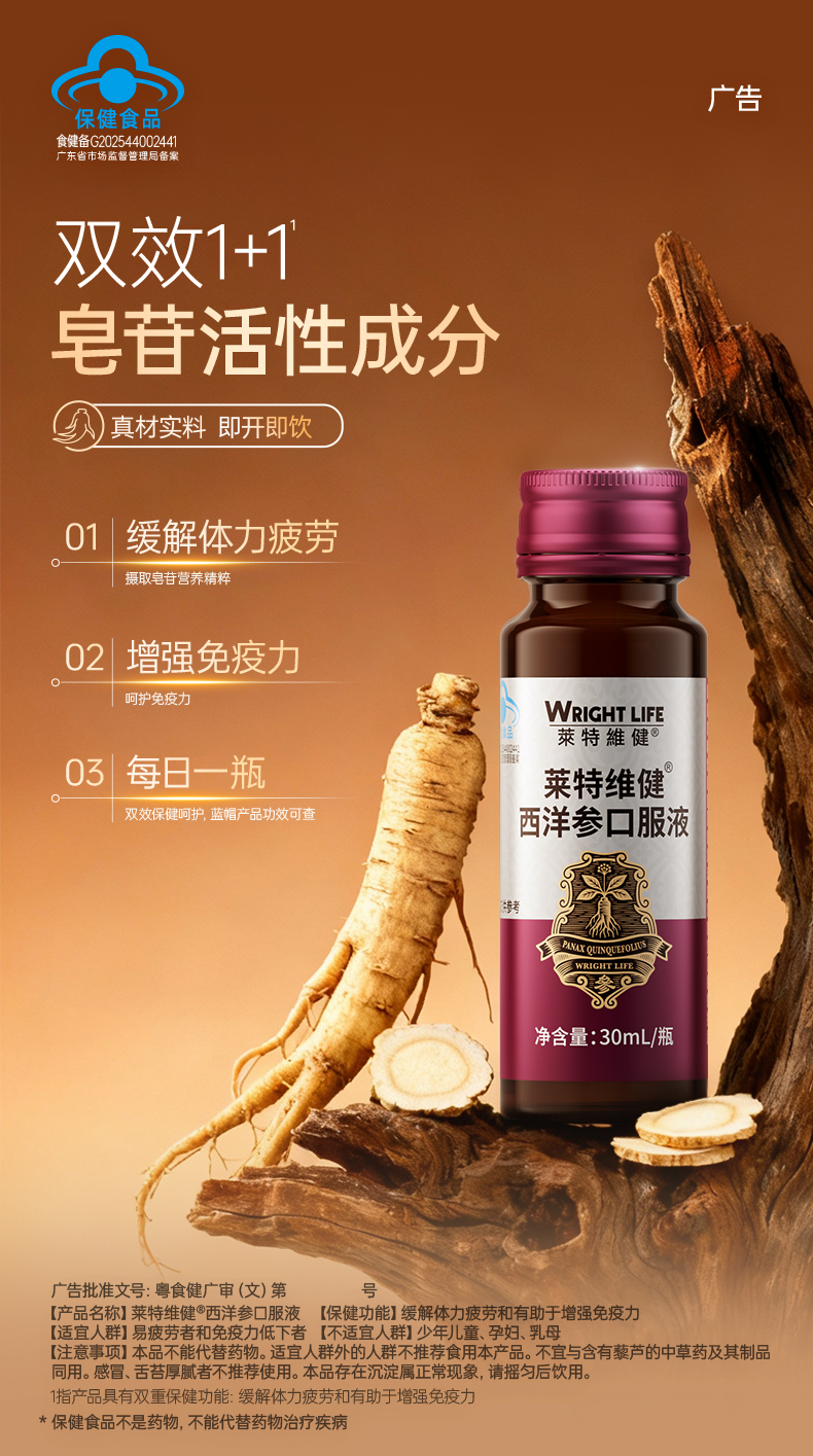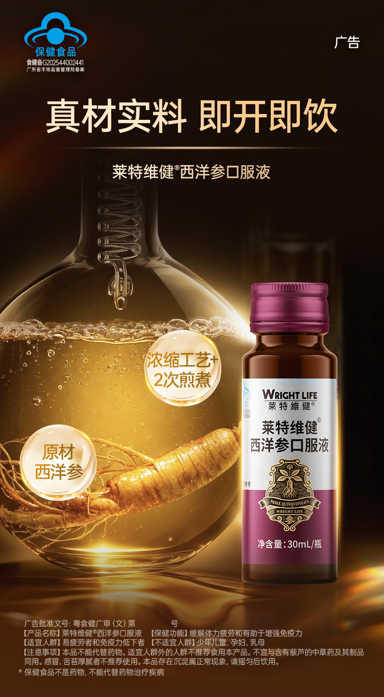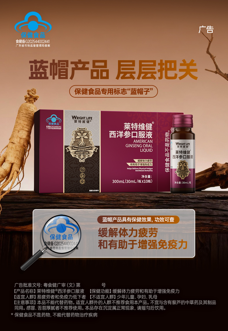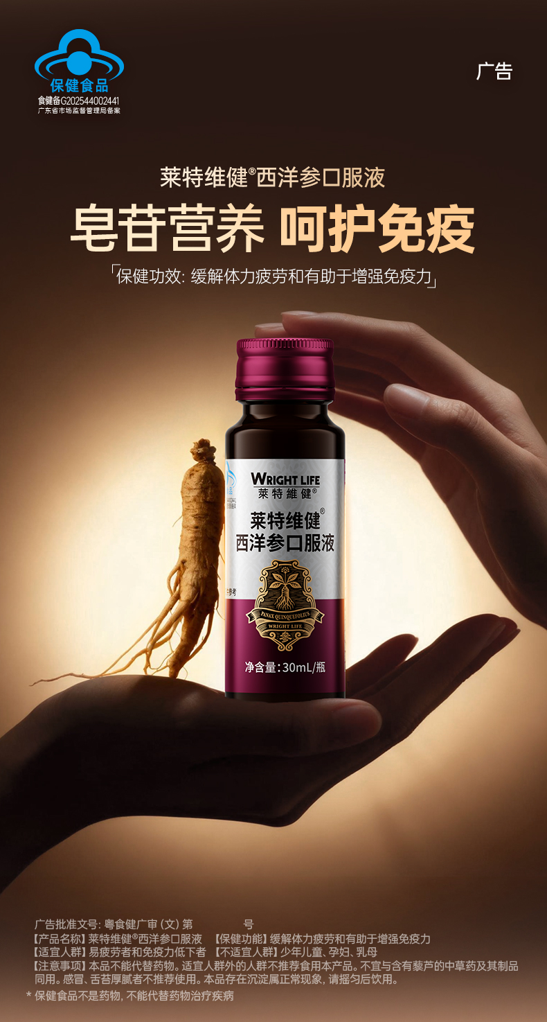 莱特维健西洋参口服液 蓝帽产品功效可查 中老年增强免疫力 缓解体力疲劳 送父母送长辈