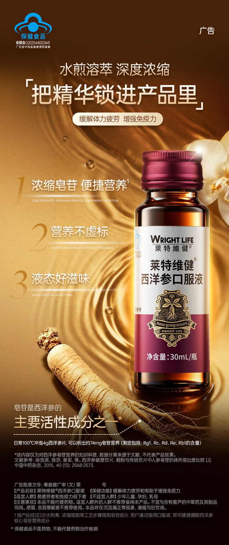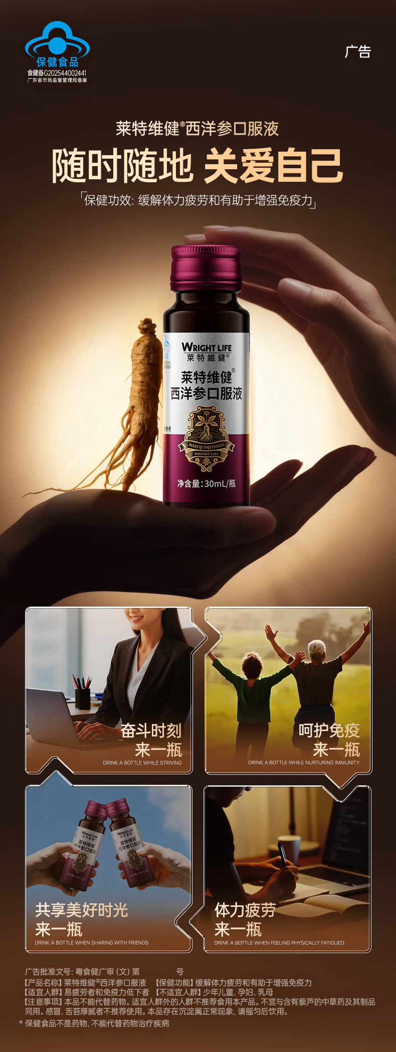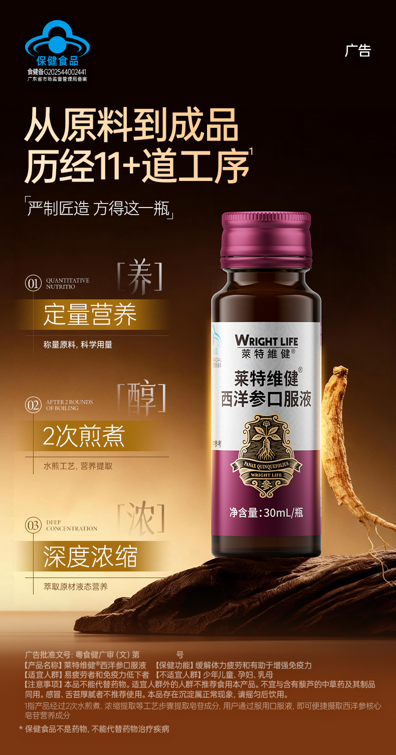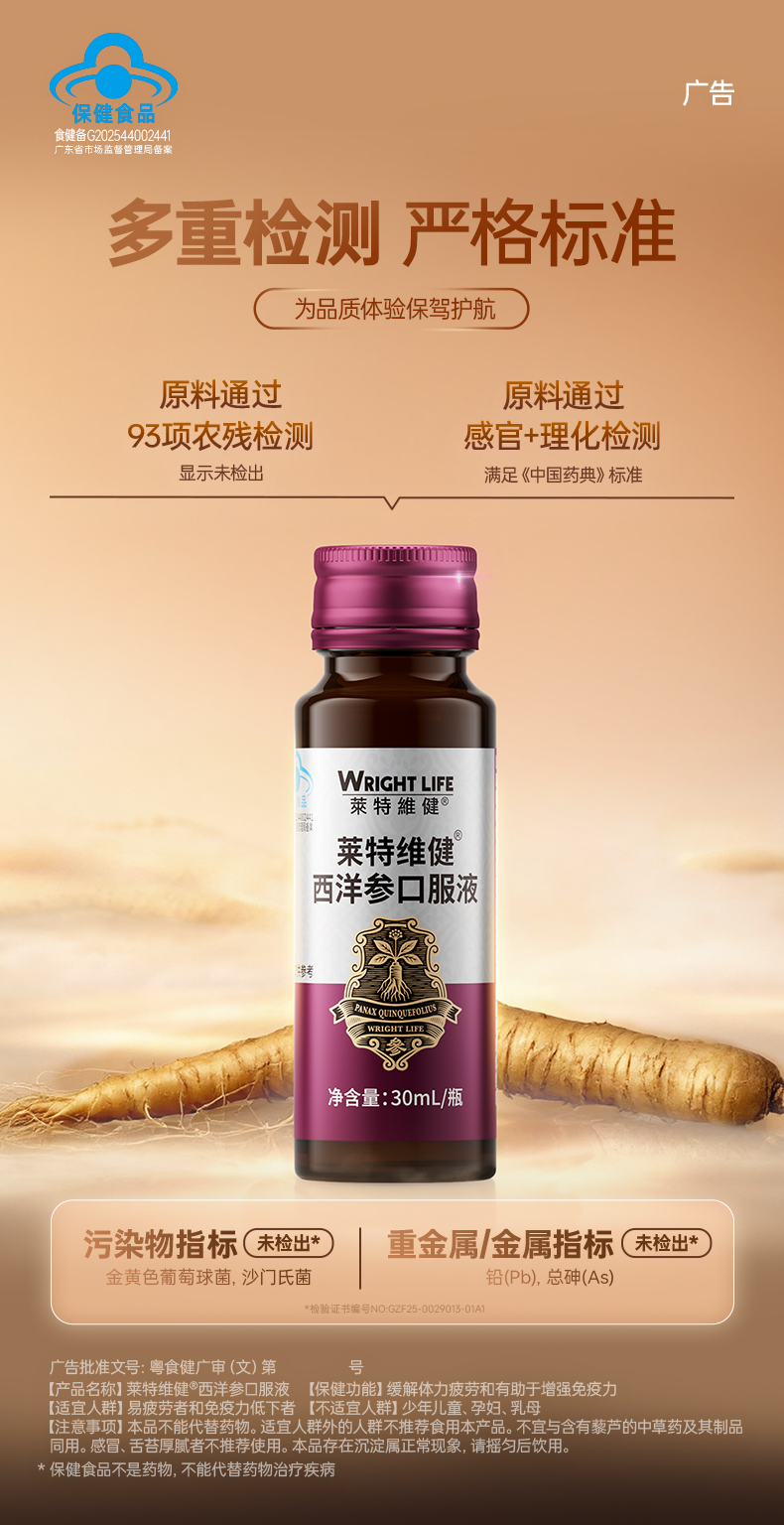 莱特维健西洋参口服液 蓝帽产品功效可查 中老年增强免疫力 缓解体力疲劳 送父母送长辈