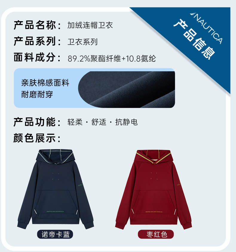 NAUTICA诺帝卡童装 加绒连帽卫衣NK341057 商品图5