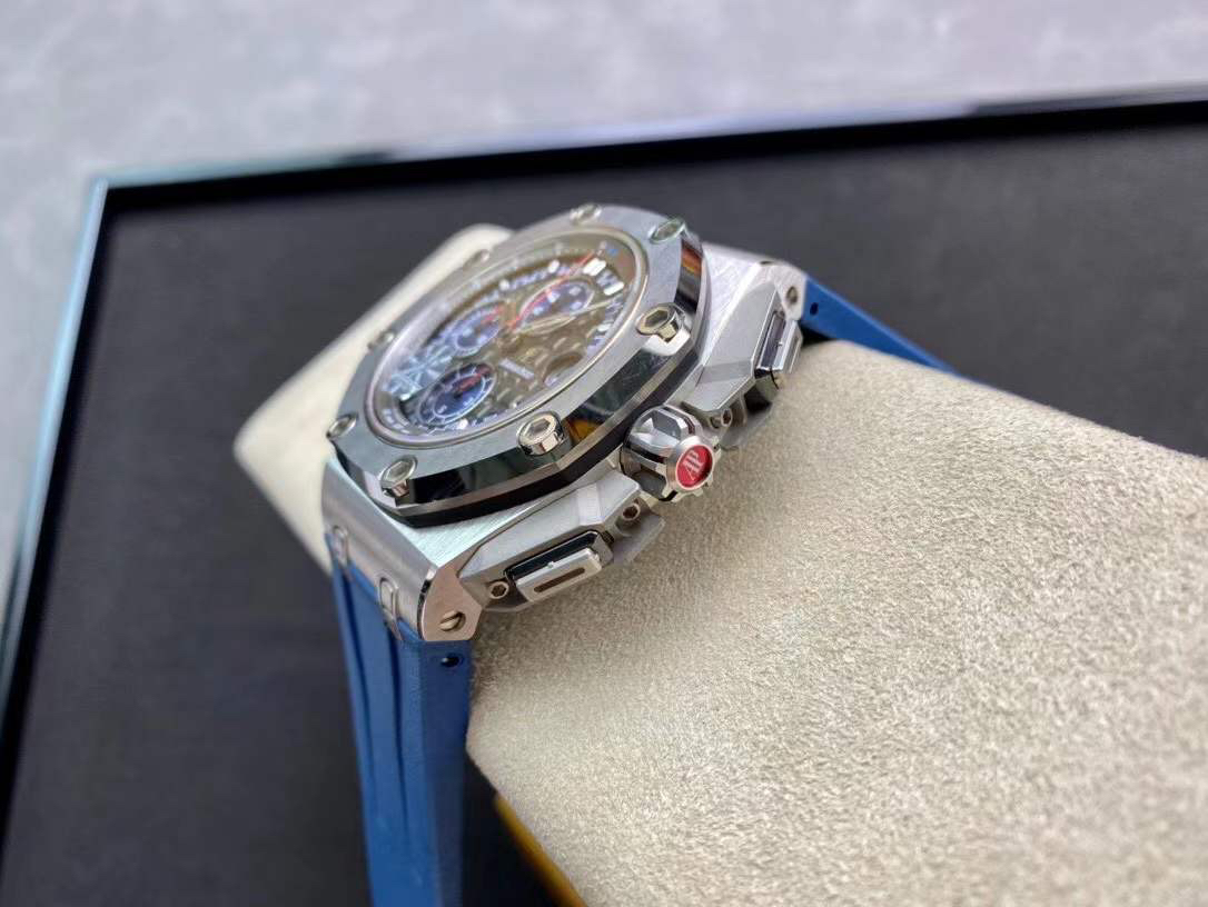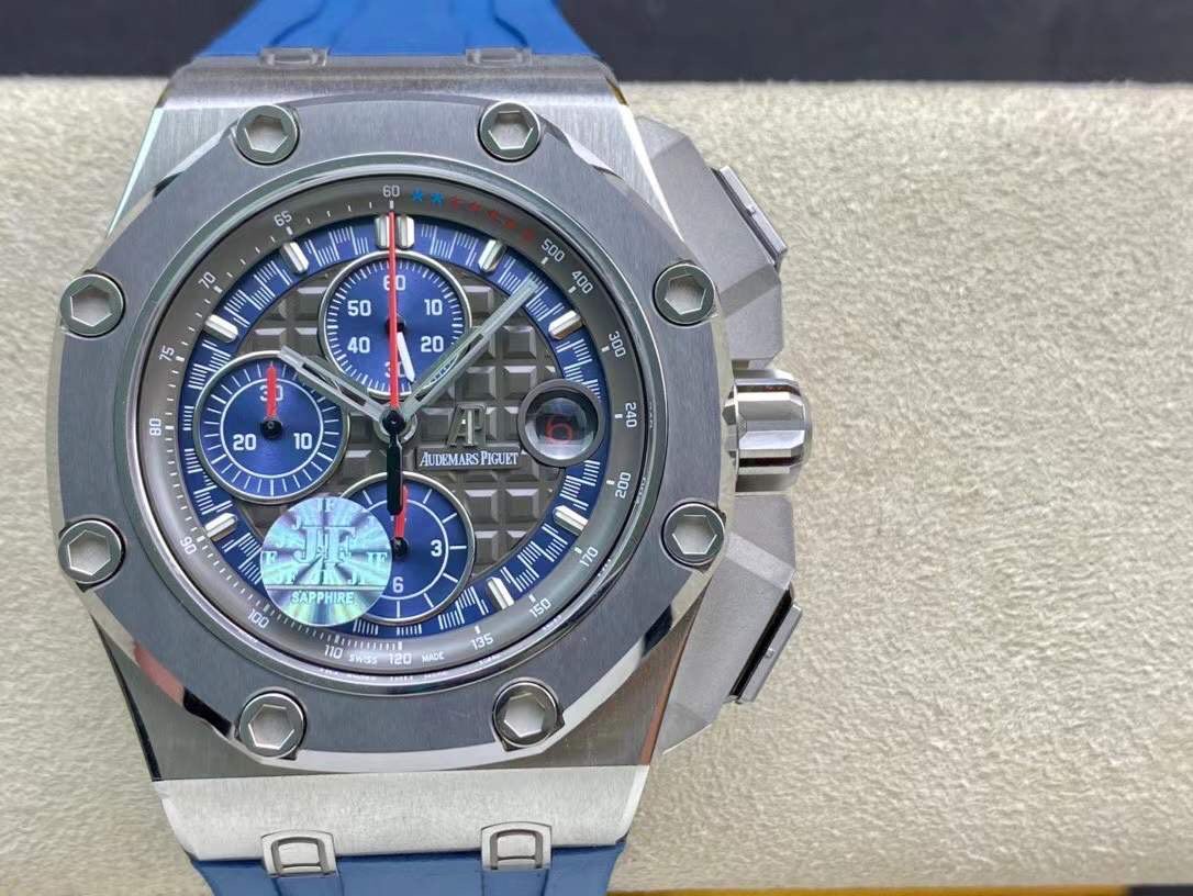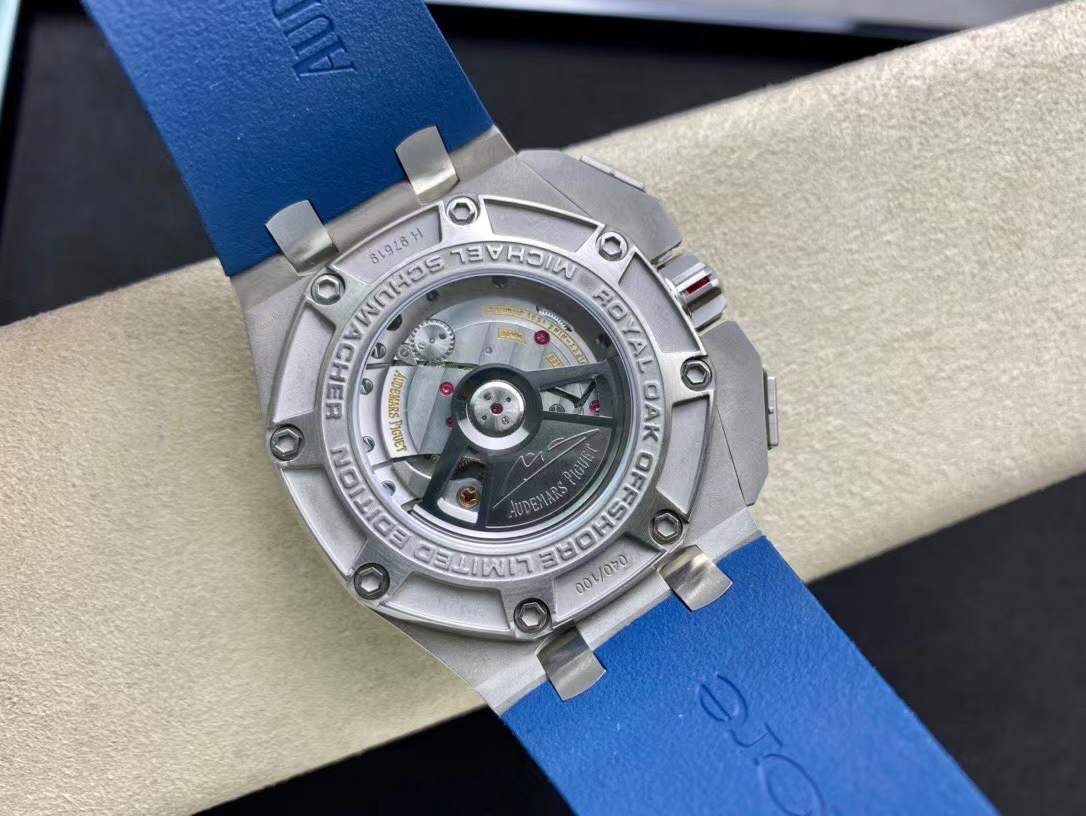 JF爱彼26568,车神舒马赫限量版!皇家橡树12秒 版本!3126机!透底,前后蓝宝石!钛金属表壳!钛陶瓷圈口!44MM。 全功能男士手表