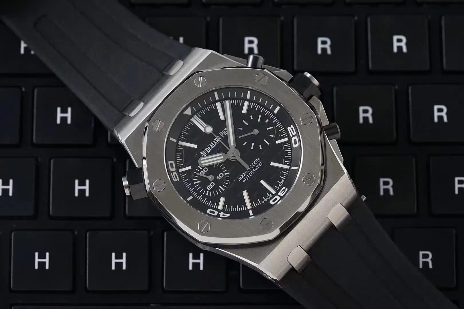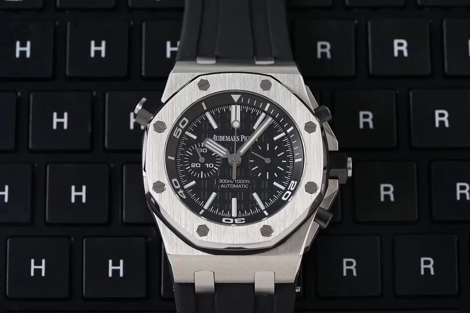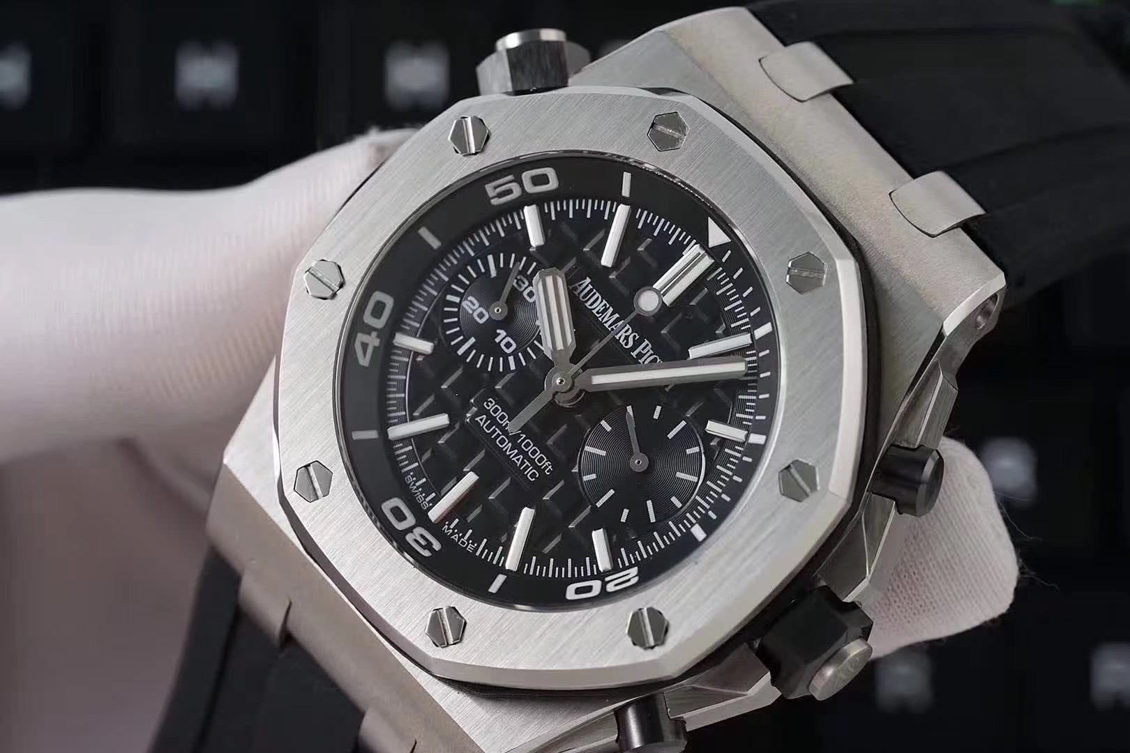 表冠材质:精钢,黑色陶瓷旋入式表冠和按钮