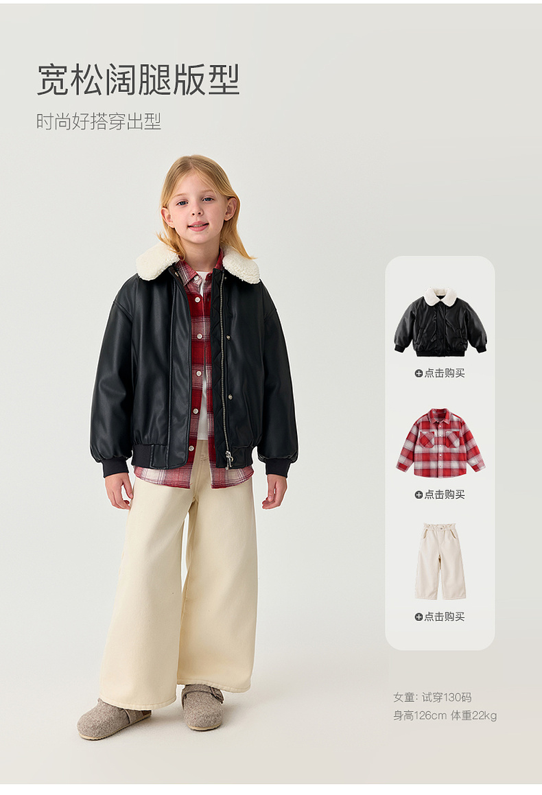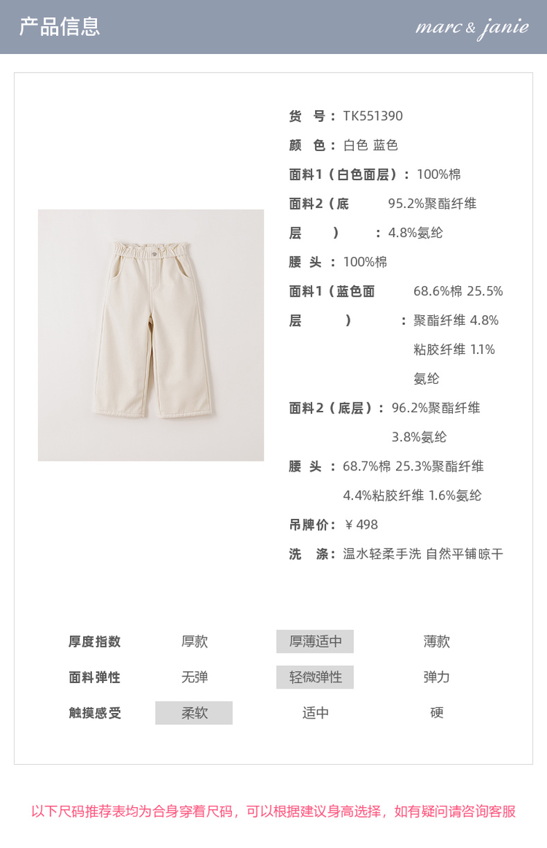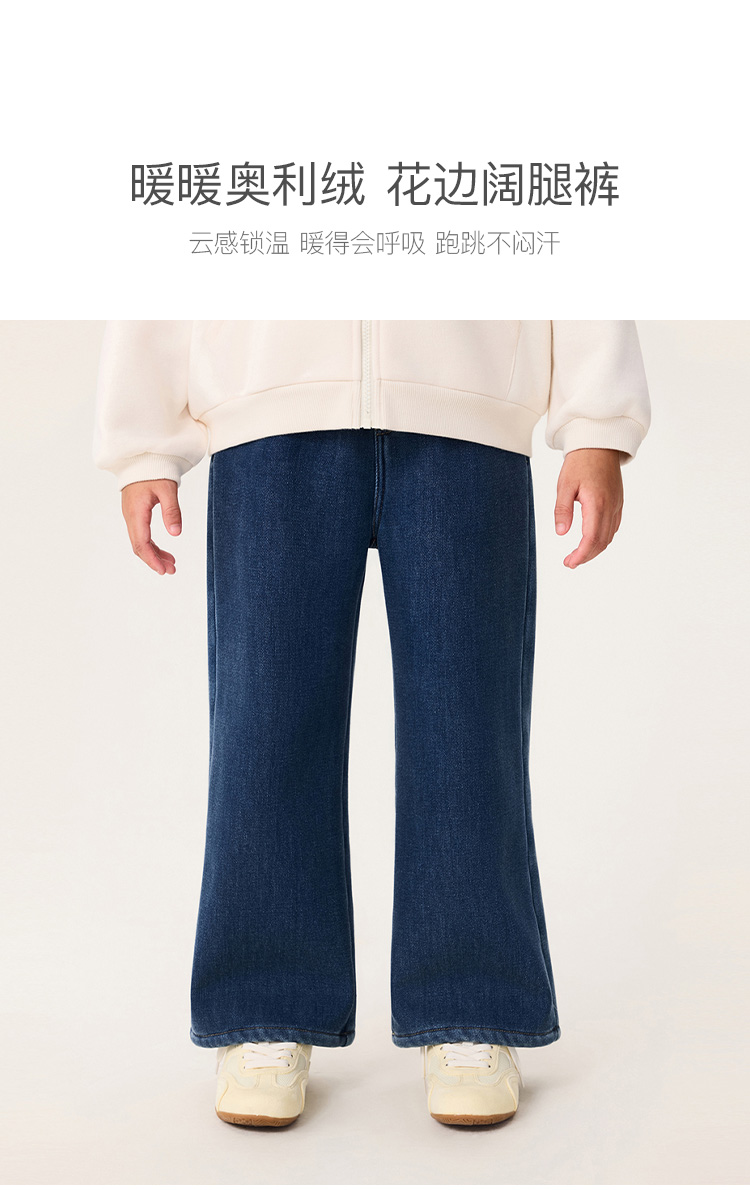 马克珍妮女童温暖奥利绒花边腰阔腿裤2025年秋冬新款551390
