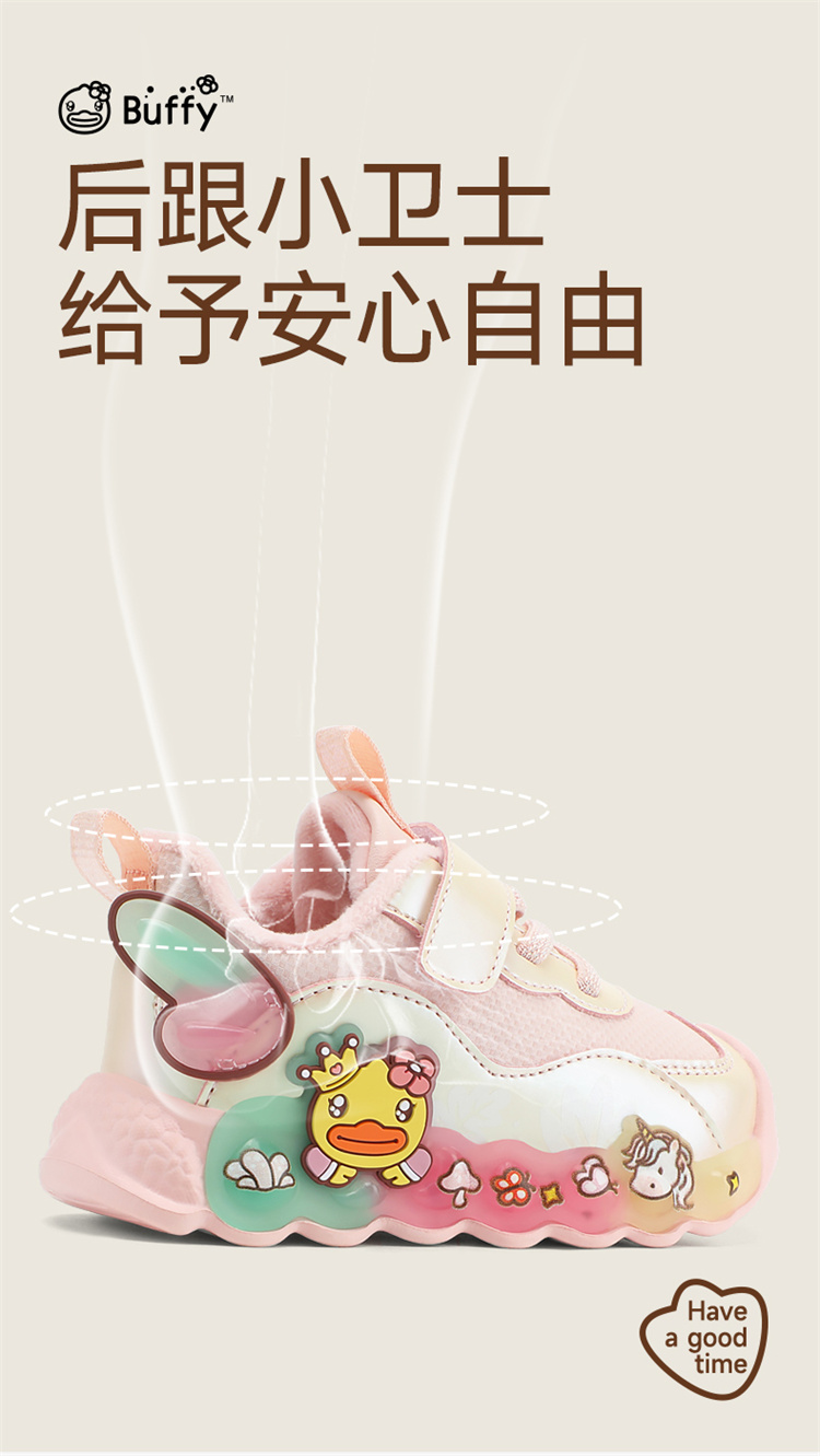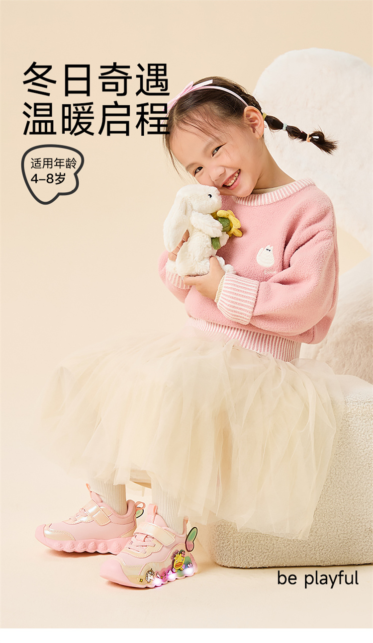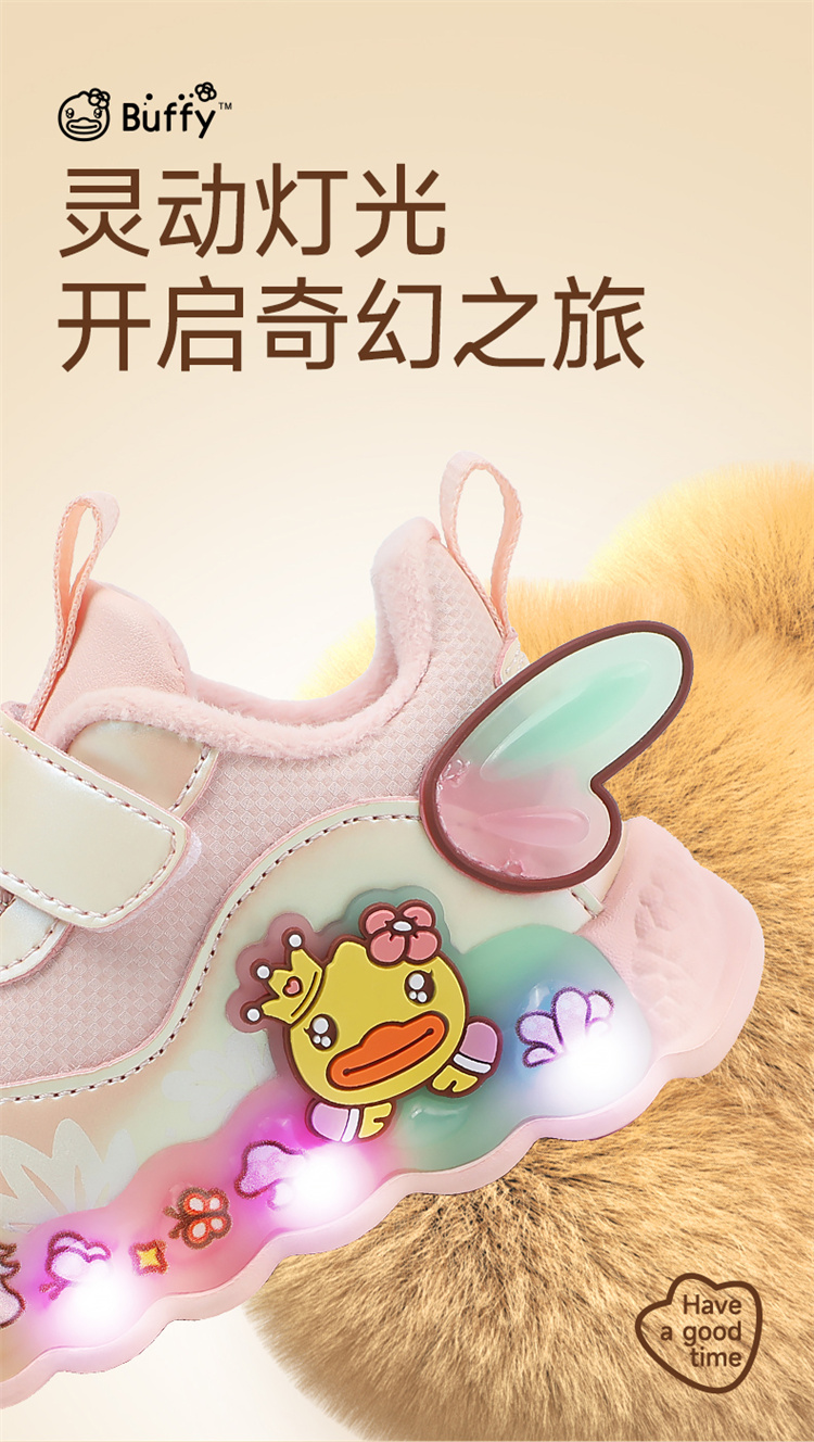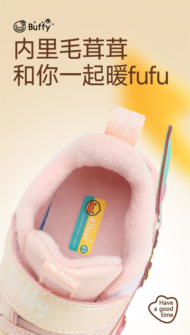 B.Duck小黄鸭童鞋女童休闲鞋加绒冬季新款户外运动鞋22-32 F5586707