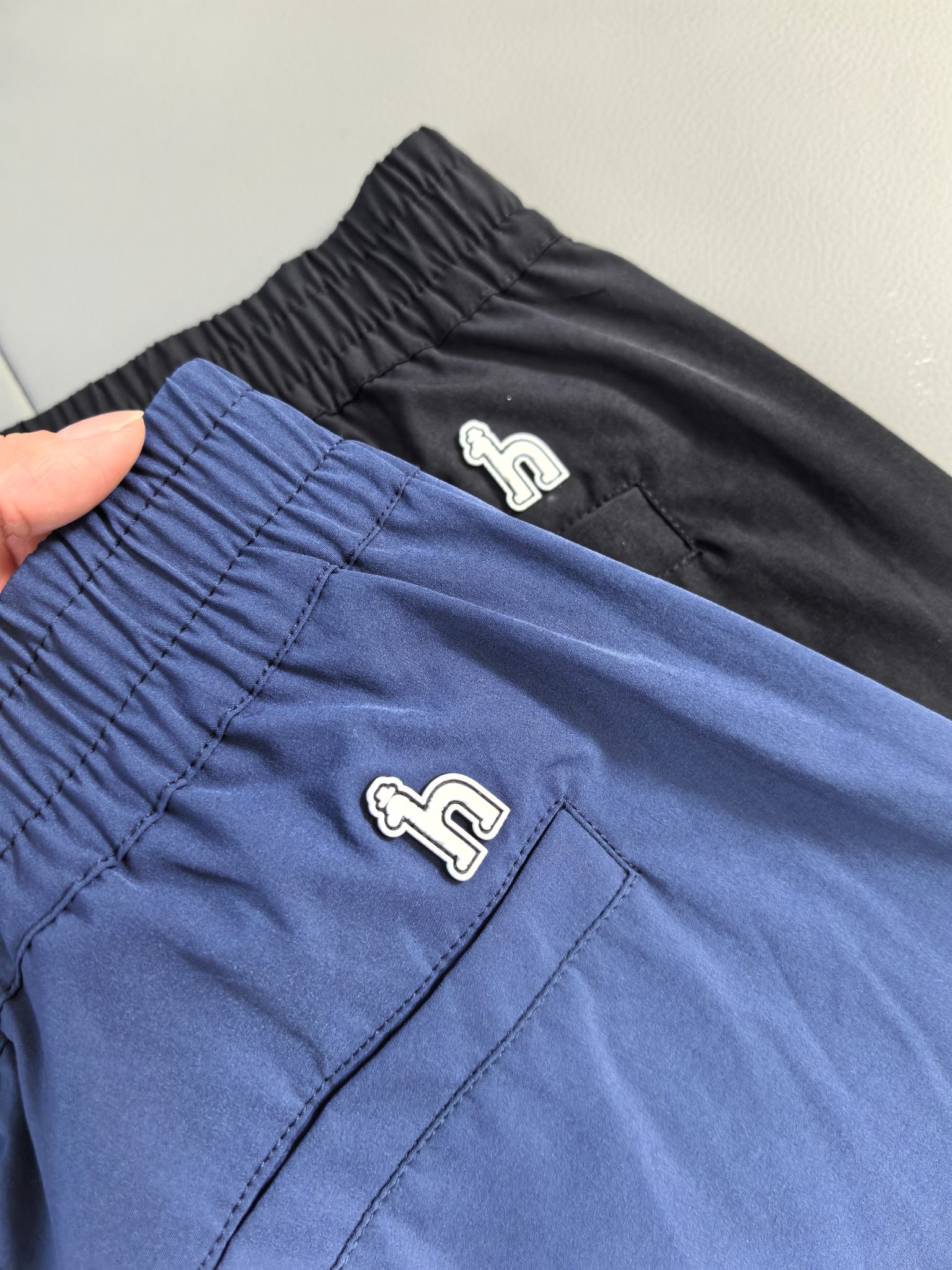 皇家俱乐部主题系列,面料舒适透气有弹性。腰部松紧+腰绳设计,绳头和后兜处精致LOGO。