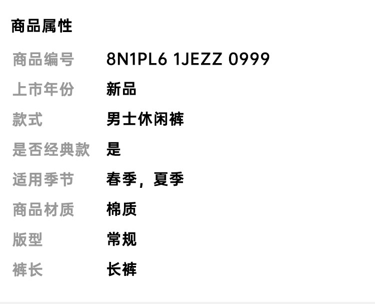 EMPORIO ARMANI 阿玛尼 男士棉质休闲运动裤 黑色 8N1PL6 1JEZZ 0999