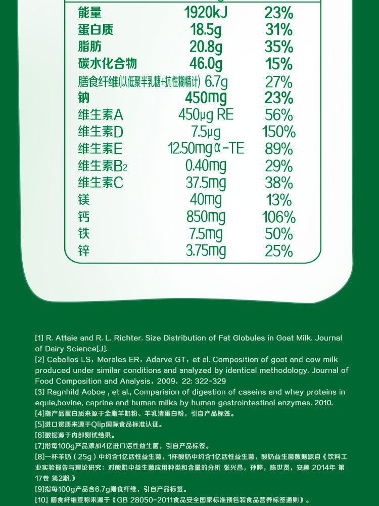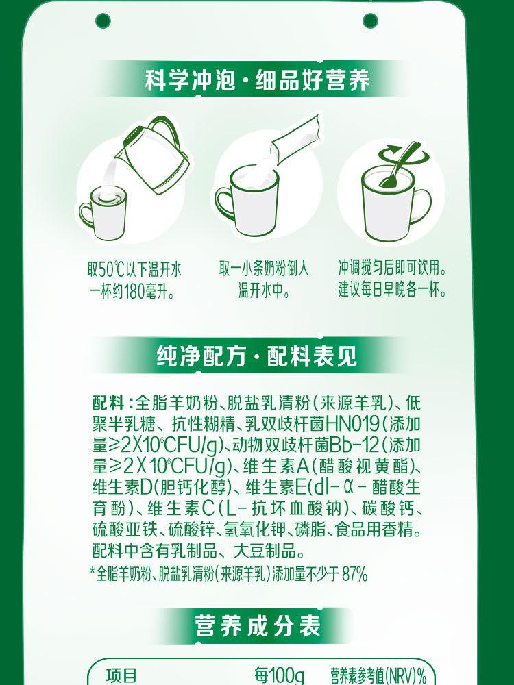 伊利倍畅全家中老年成人女士大学生高钙羊奶粉175g*1盒早餐便携装