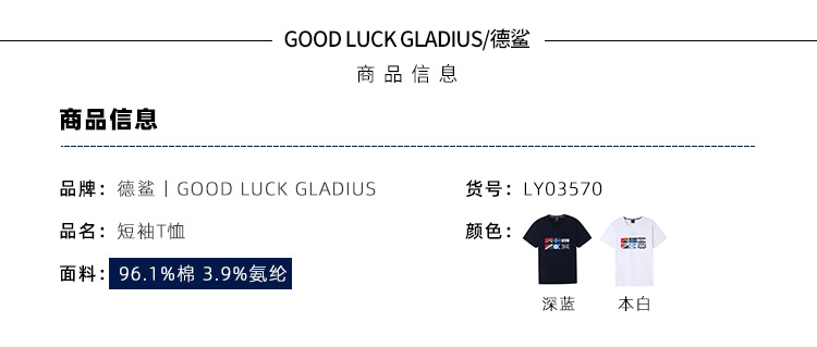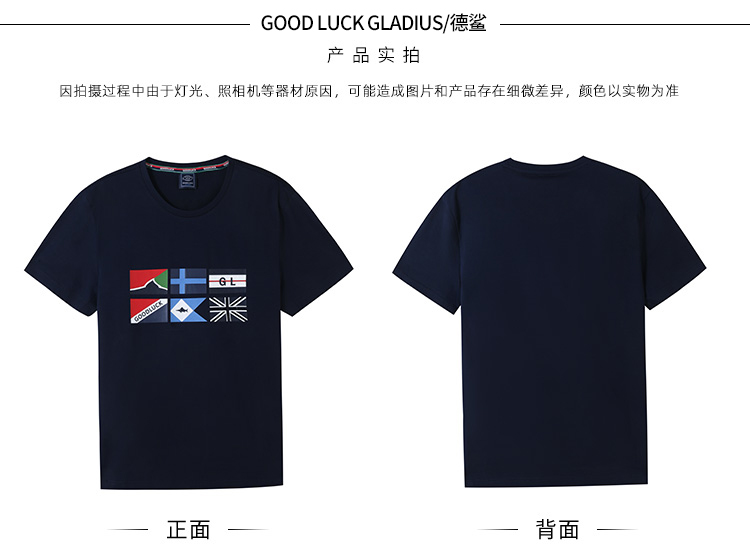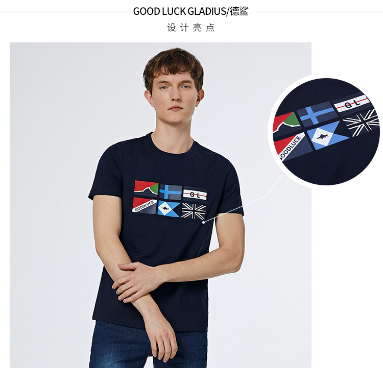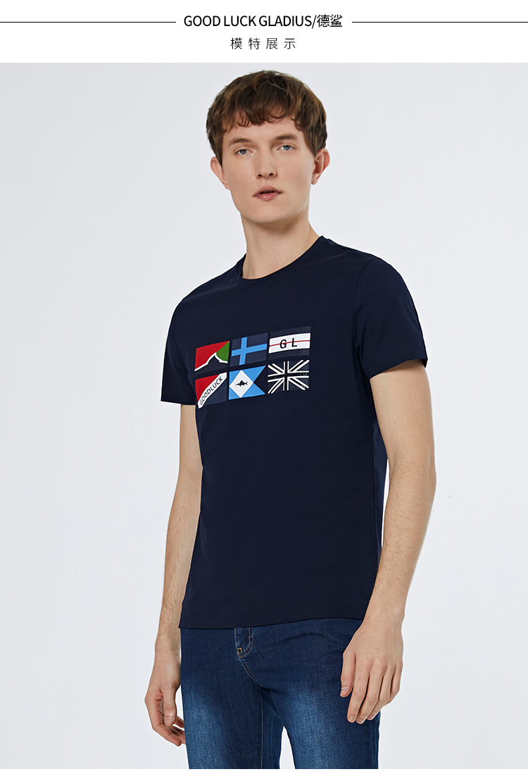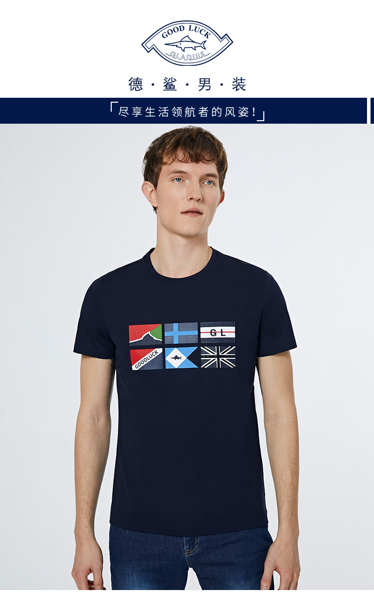 GOOD LUCK /德鲨海洋风圆领微弹舒适短袖T恤LY03570