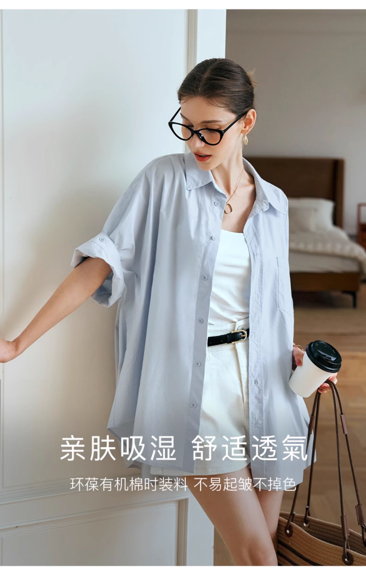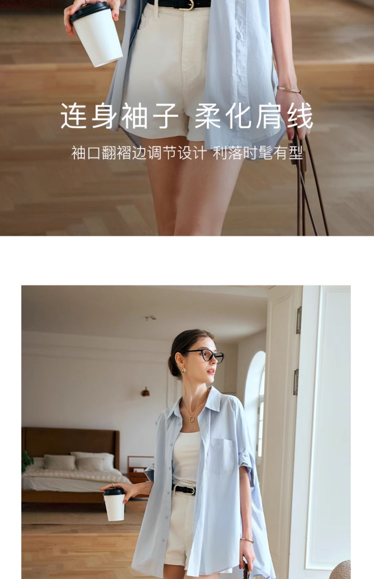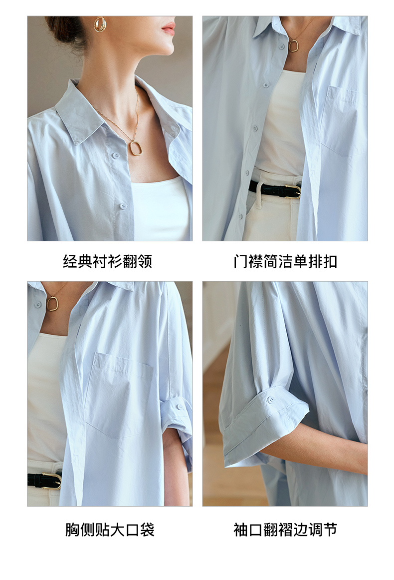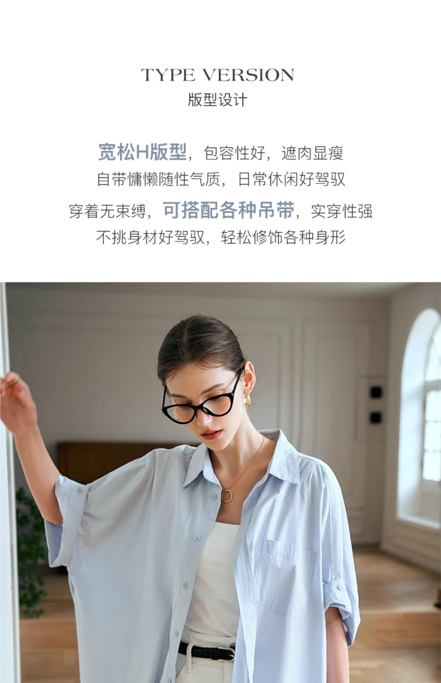 欧芮儿法式蓝色短袖衬衫女夏季2024新款宽松休闲衬衣空调衫松弛感