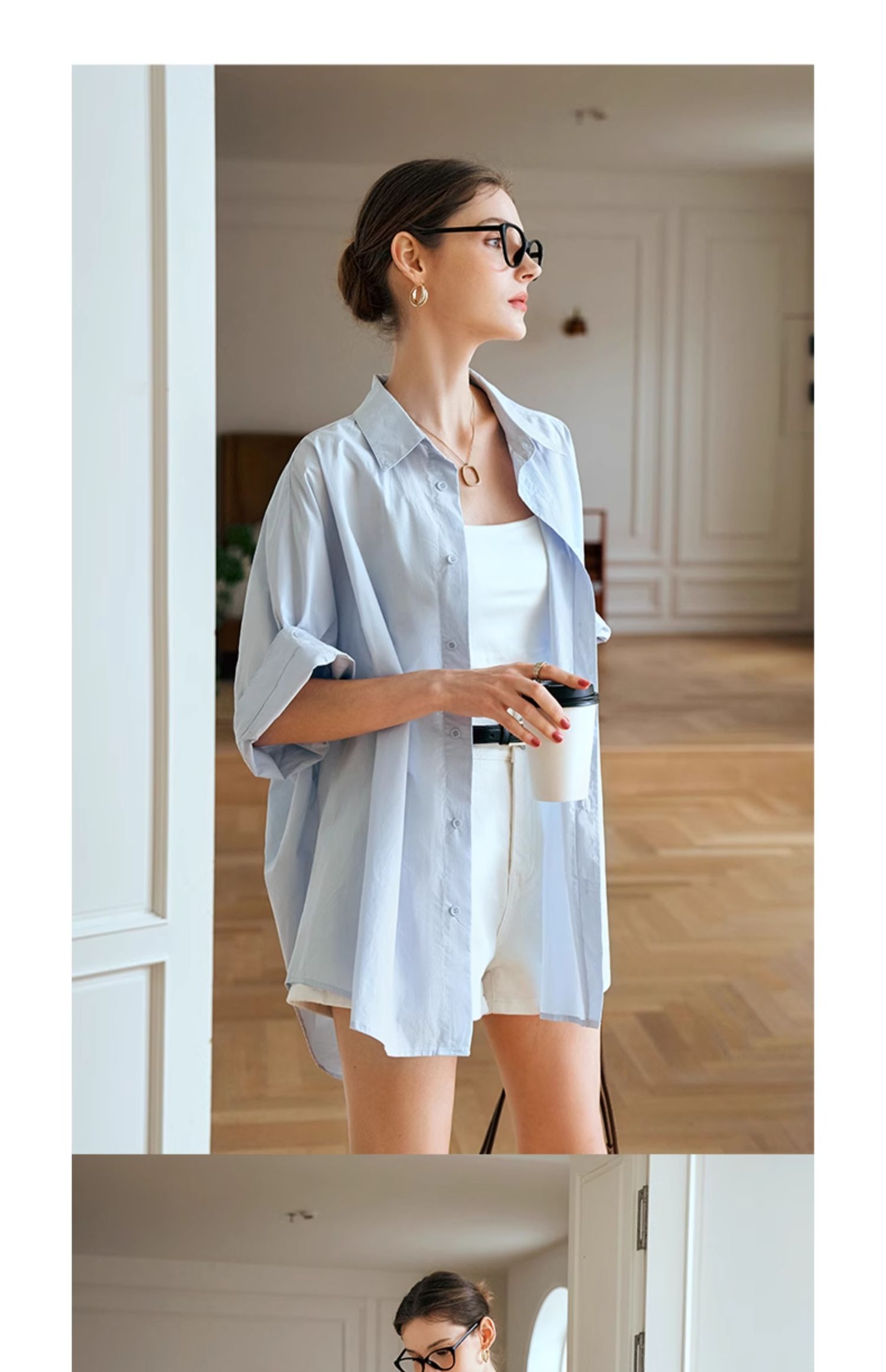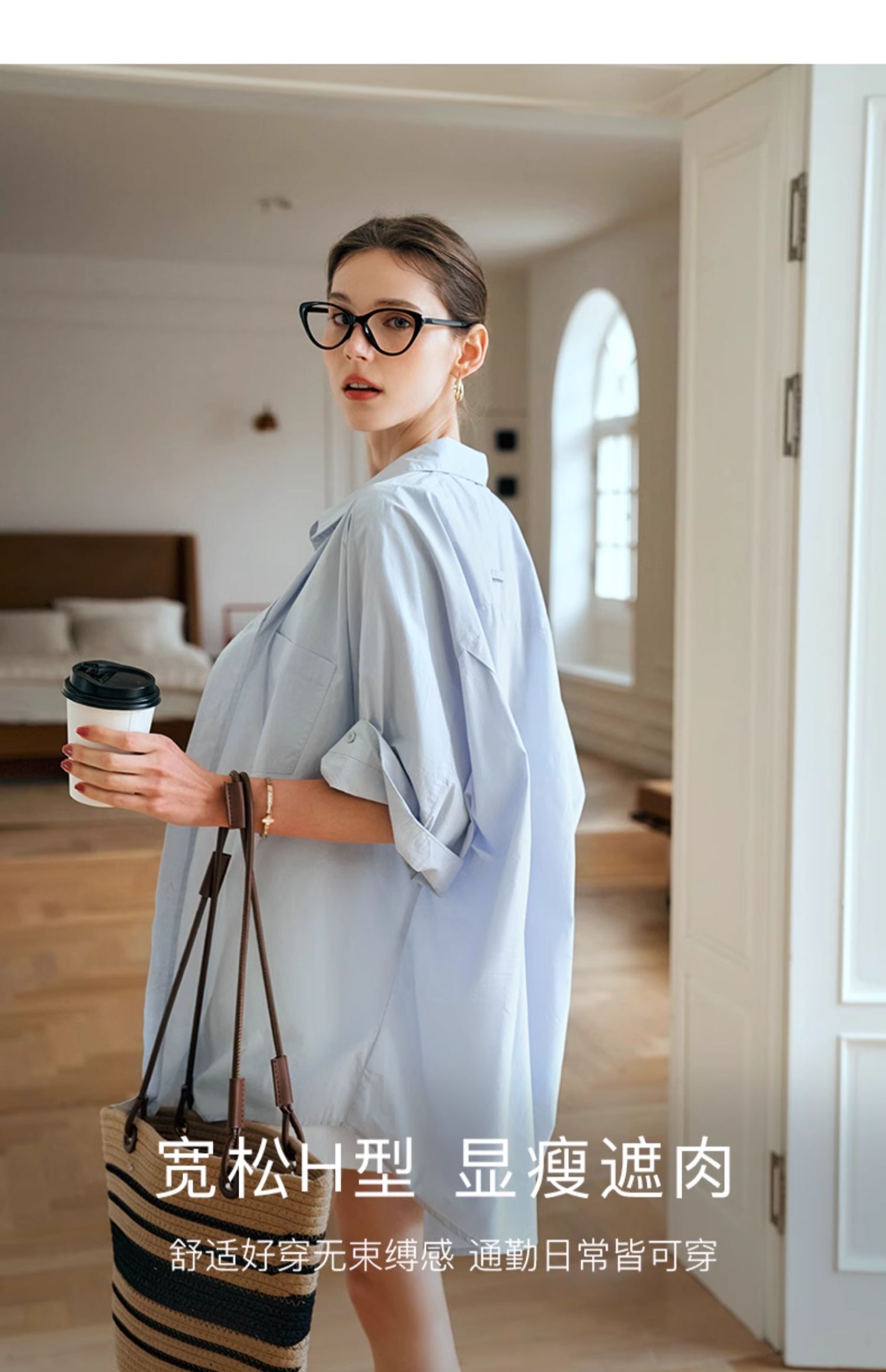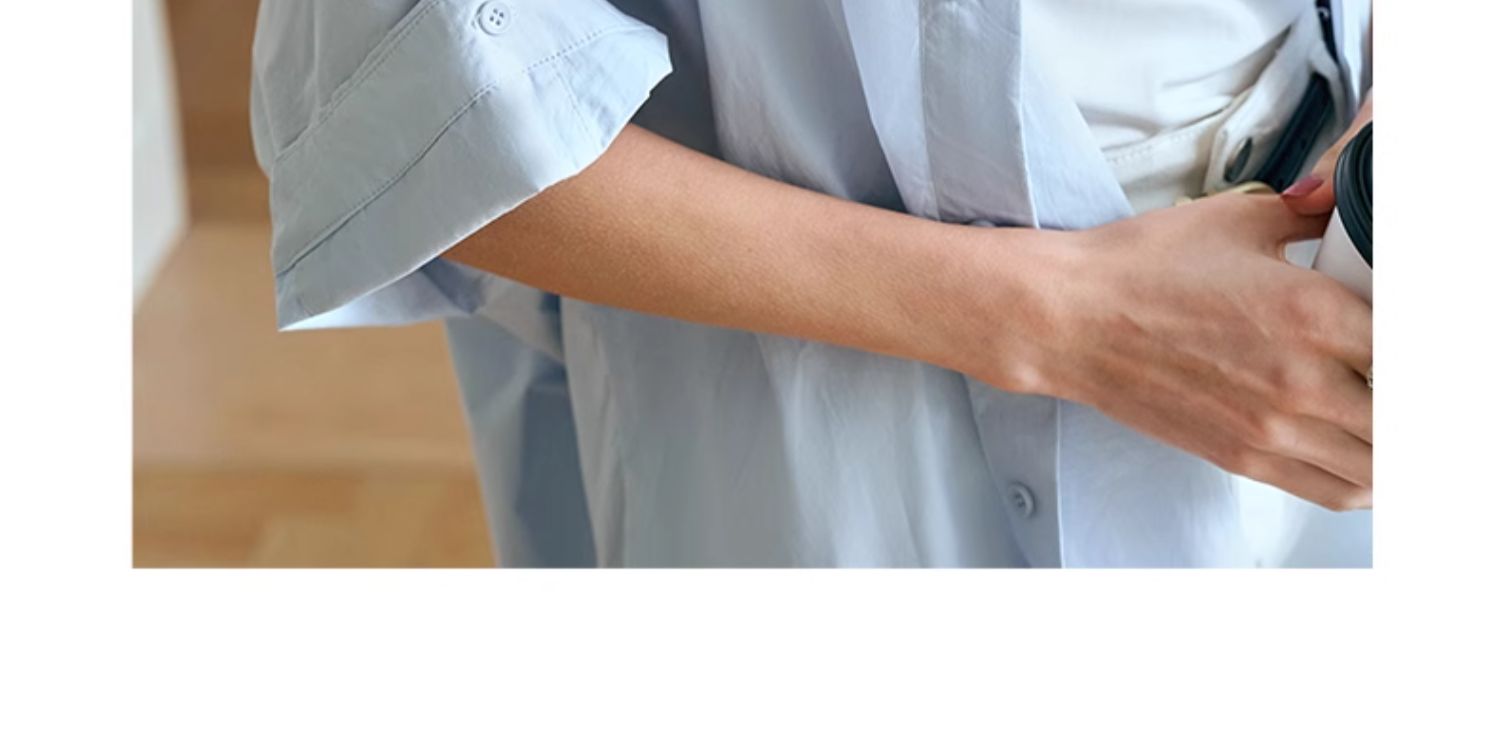 欧芮儿法式蓝色短袖衬衫女夏季2024新款宽松休闲衬衣空调衫松弛感