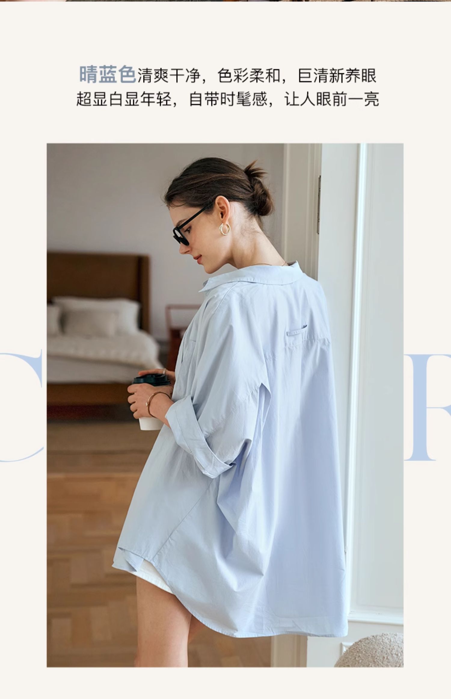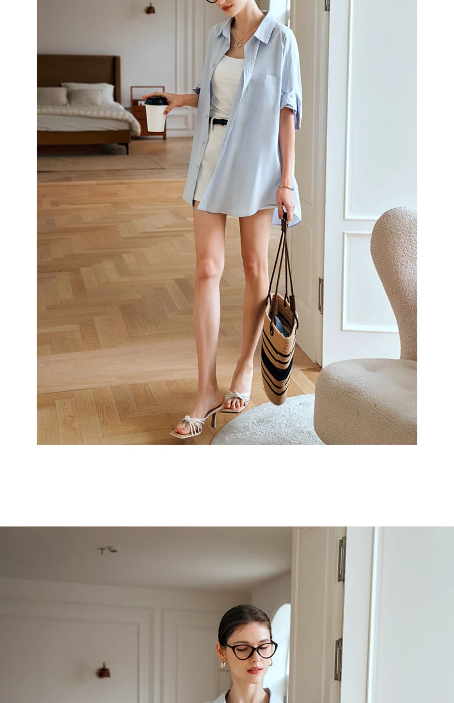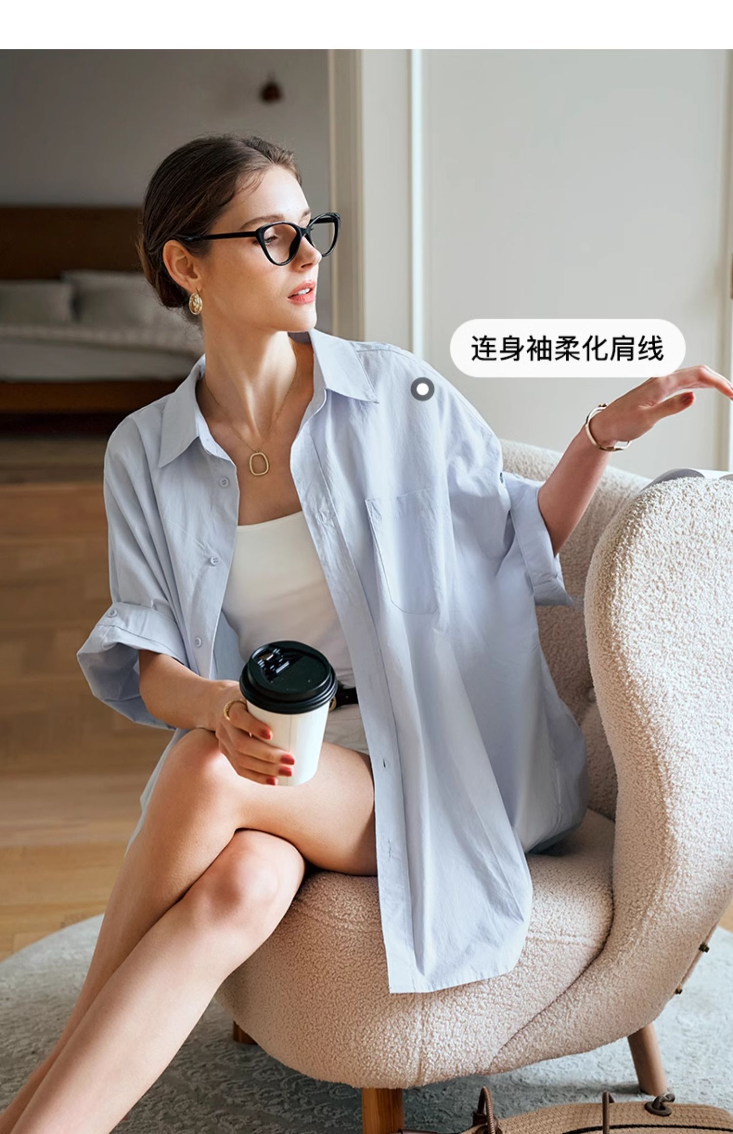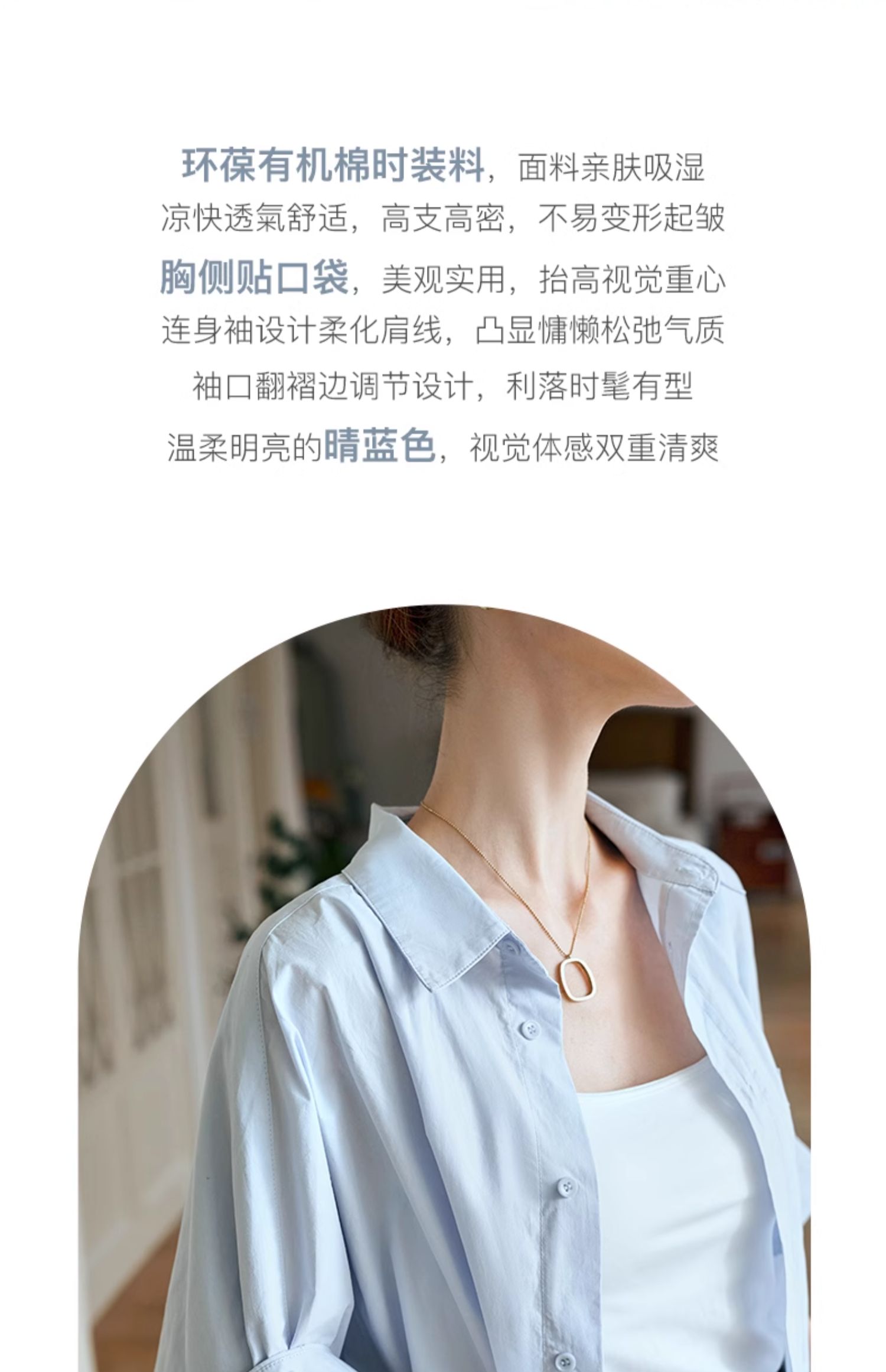 欧芮儿法式蓝色短袖衬衫女夏季2024新款宽松休闲衬衣空调衫松弛感