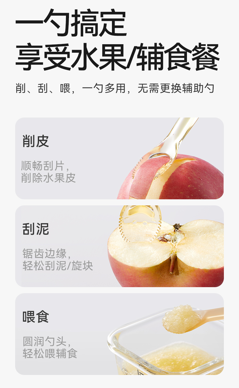【19.9元换购】双头刮泥勺婴儿辅食餐具6个月以上宝宝专用果泥勺吃水果
