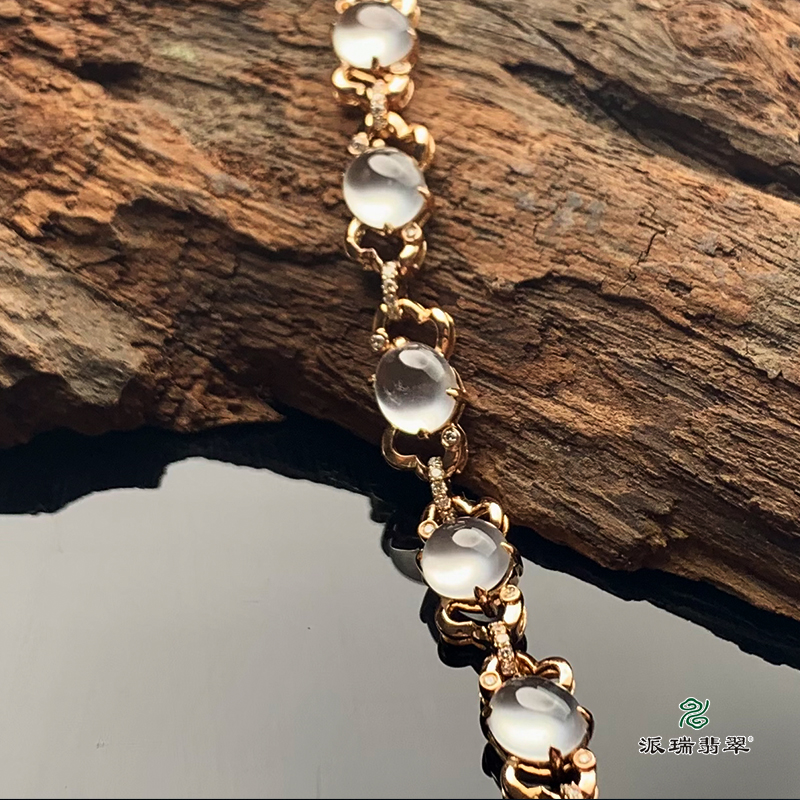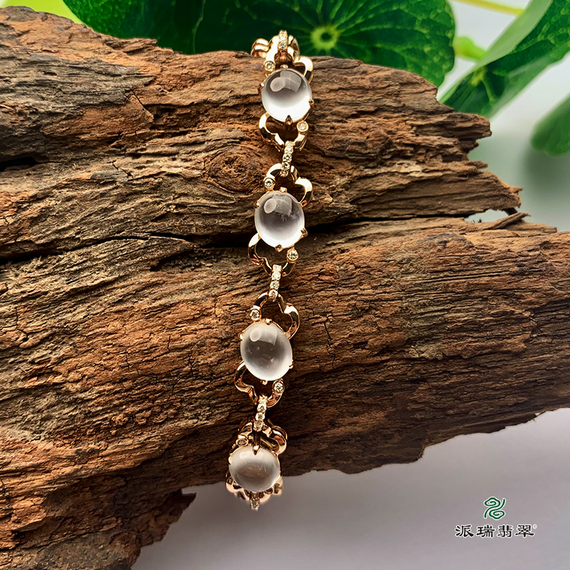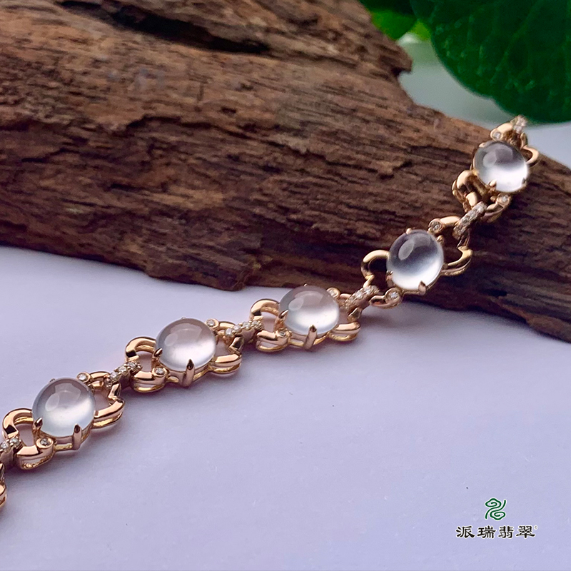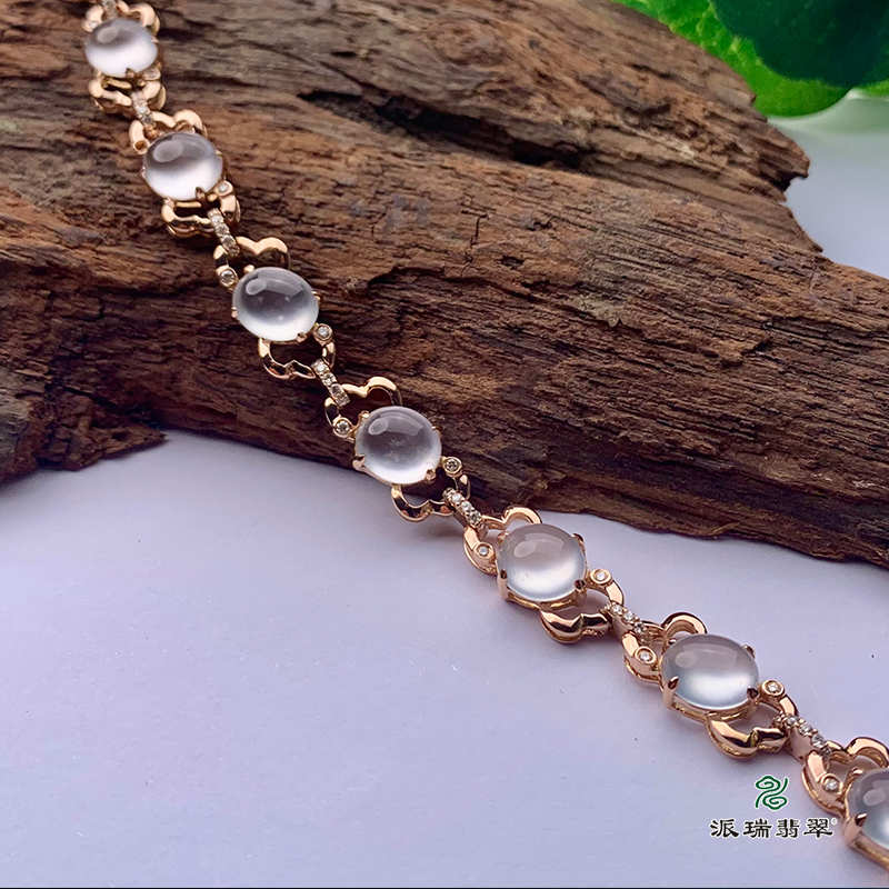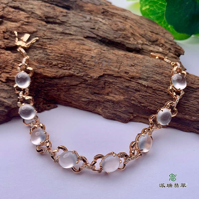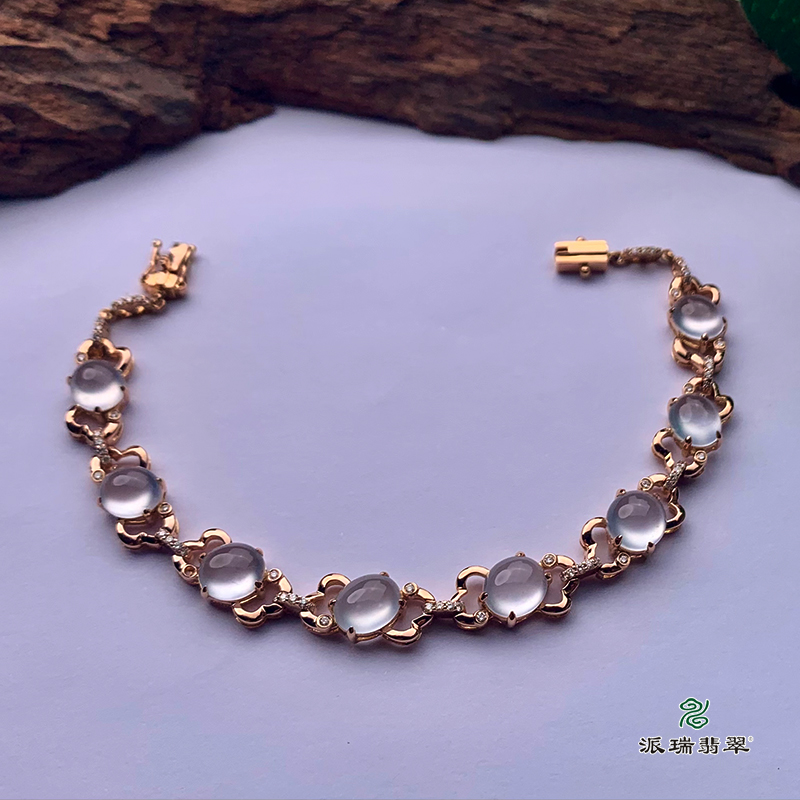 派瑞翡翠 18k金翡翠手链 冰种 无色
