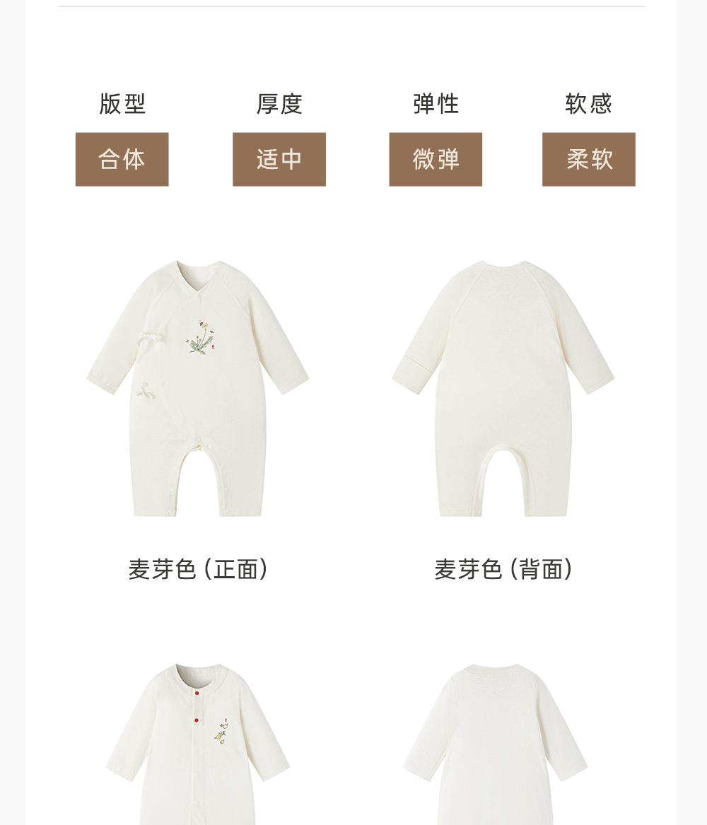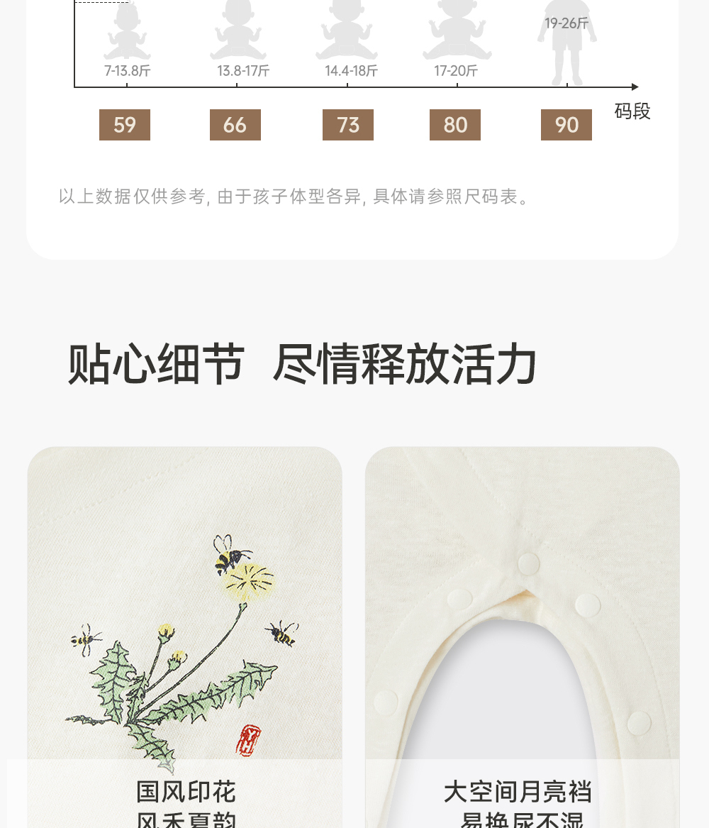 英氏国风童装婴幼儿抑菌连体衣春夏透气防螨爬服YLHAJ1Q010A