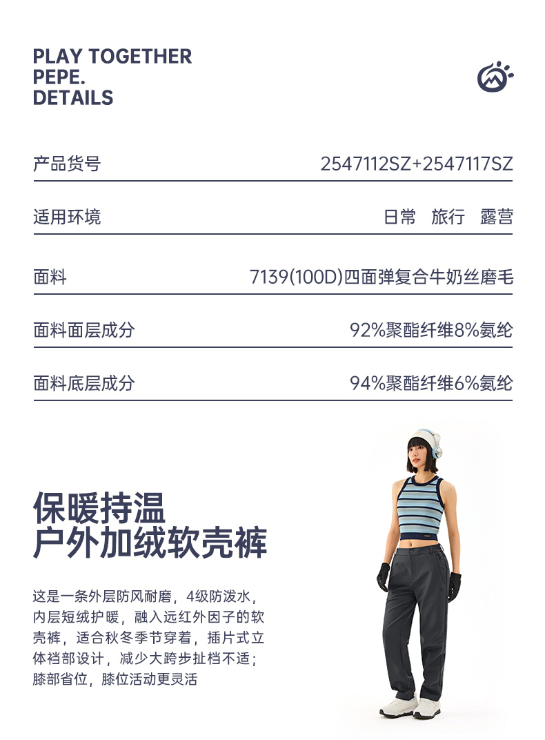 TECTOP探拓户外软壳裤男女加绒保暖防风防泼水透气徒步登山冲锋