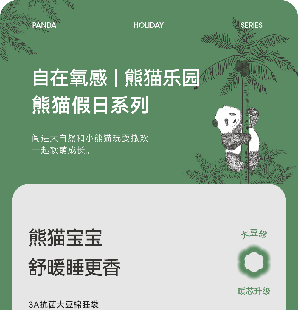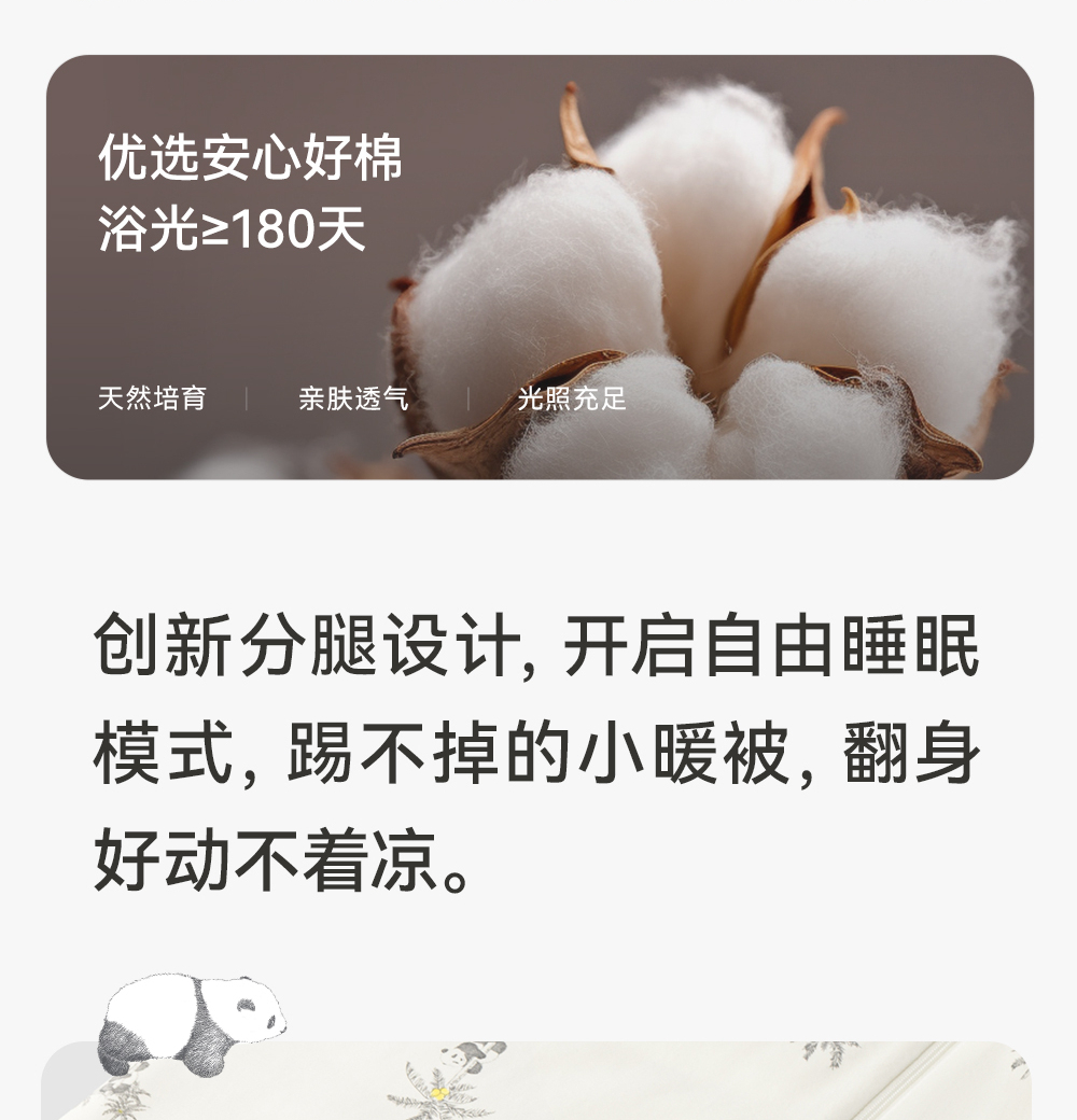 英氏熊猫氧感系列宝宝抗菌分腿睡袋2024四季防踢被YESFJ0Q001A