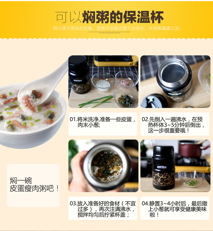 杯具熊焖烧壶不锈钢真空保温饭盒保温桶粥桶焖烧杯焖烧罐