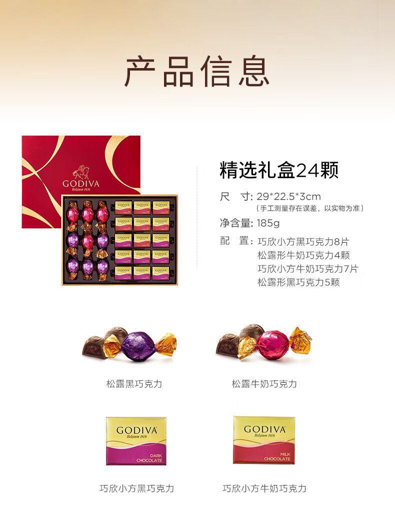 歌帝梵巧克力精选礼盒24颗装185g/045338 一盒四味奢想多重风味