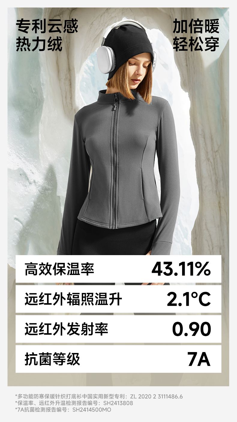 素湃Supield云感热力绒拉链开衫保暖打底衫修身女秋款7A抗菌透气