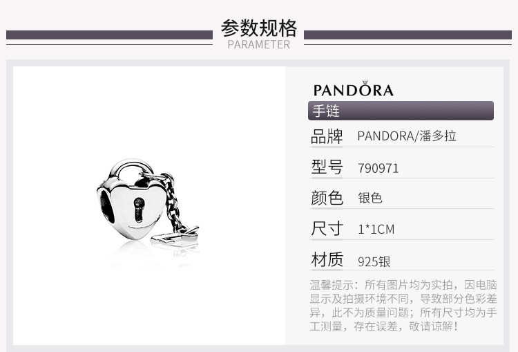 PANDORA/潘多拉 925银心形串饰串珠 790971 银色