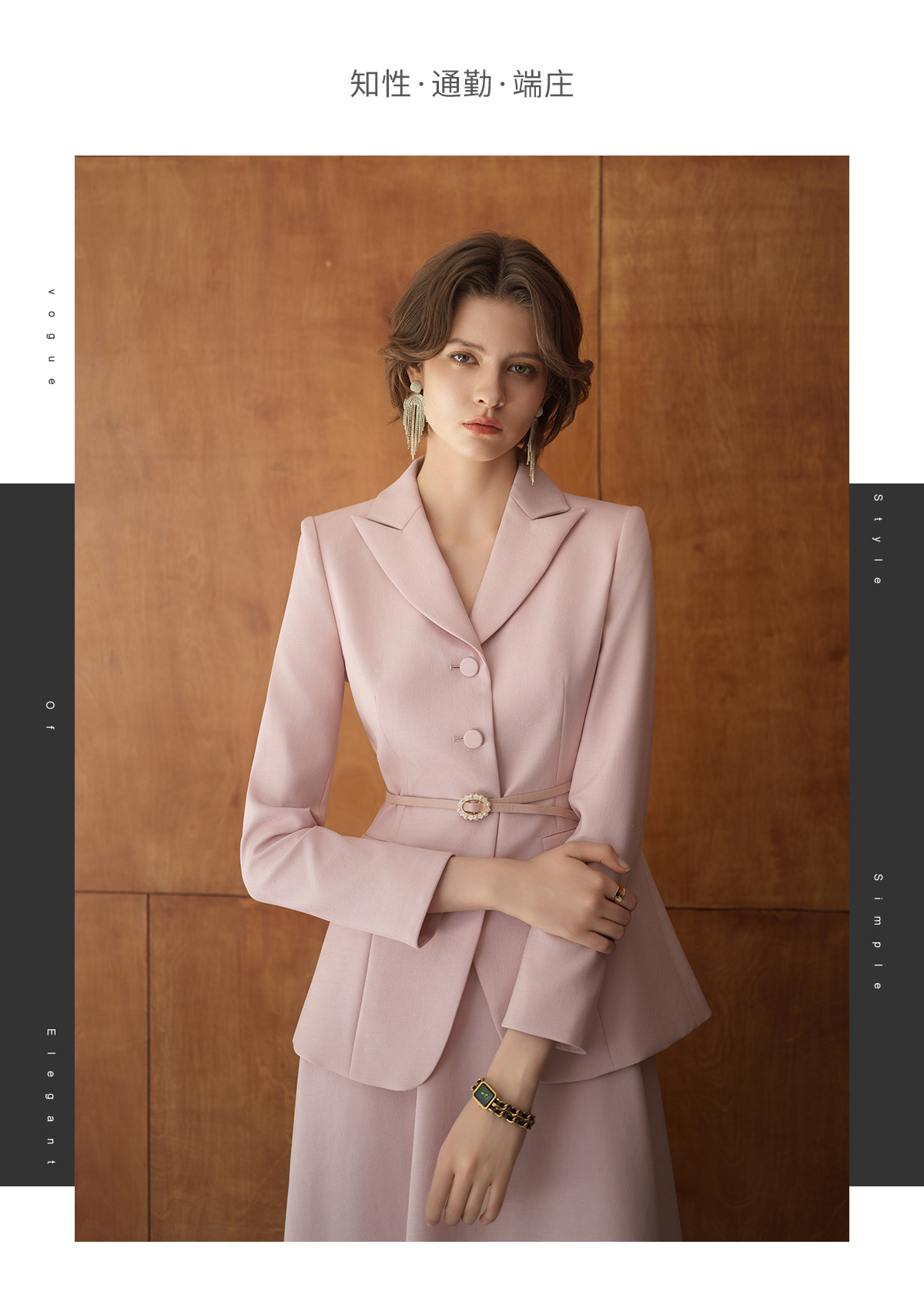 IWY/气质粉色西装套装裙女收腰显瘦主持人上镜正装职业装工作服CS2051