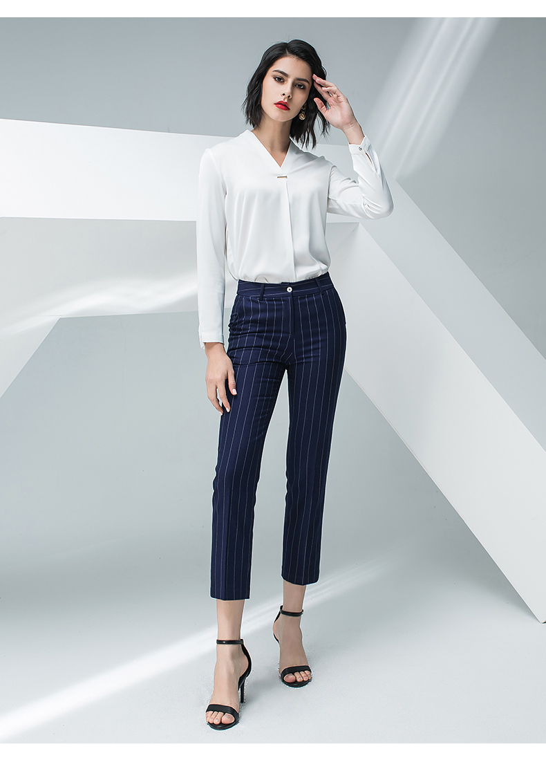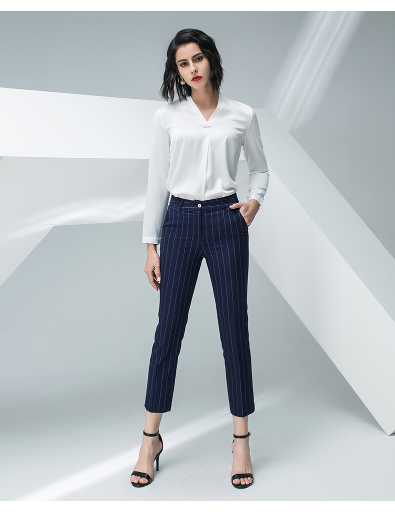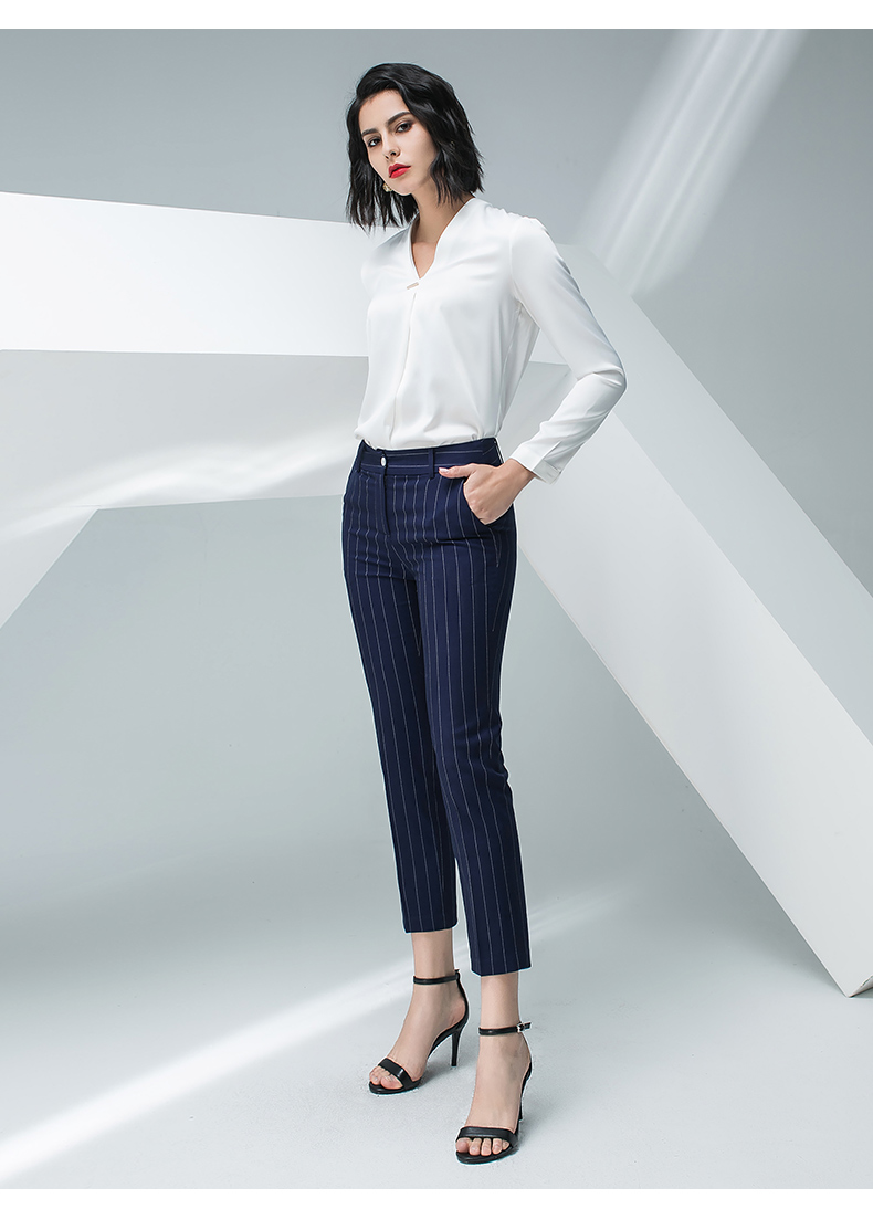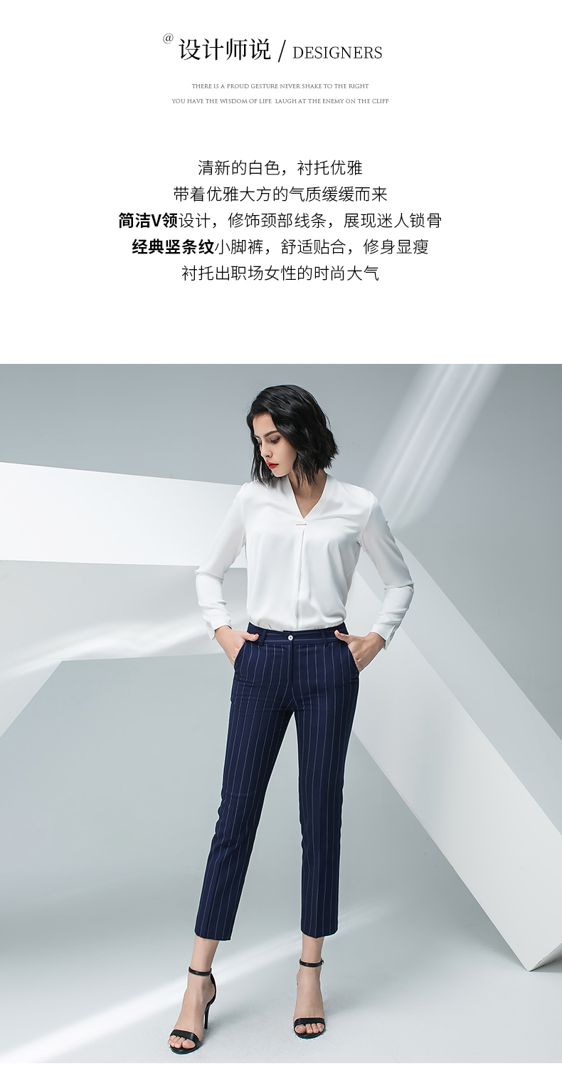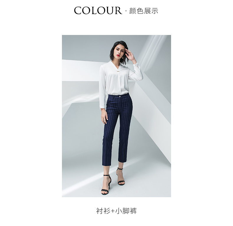 IWY/白色长袖衬衫蓝色条纹小脚裤套装BP871