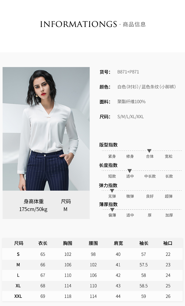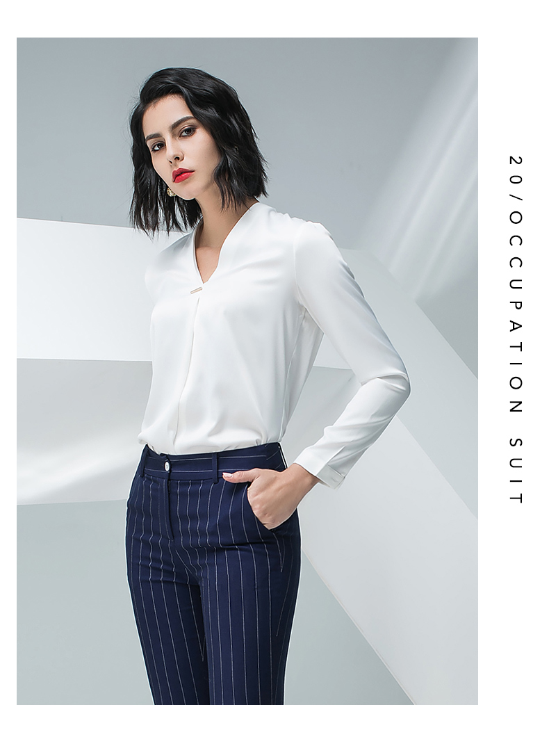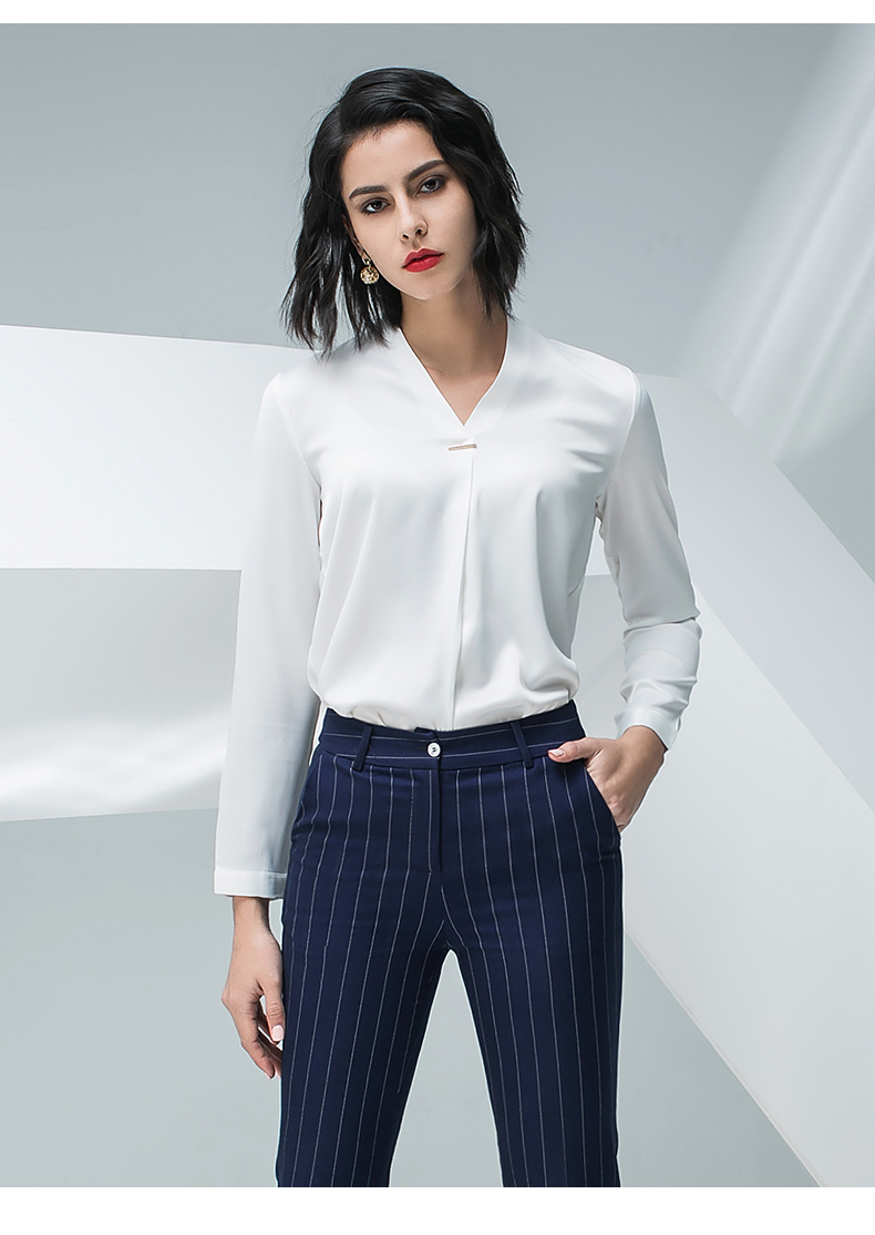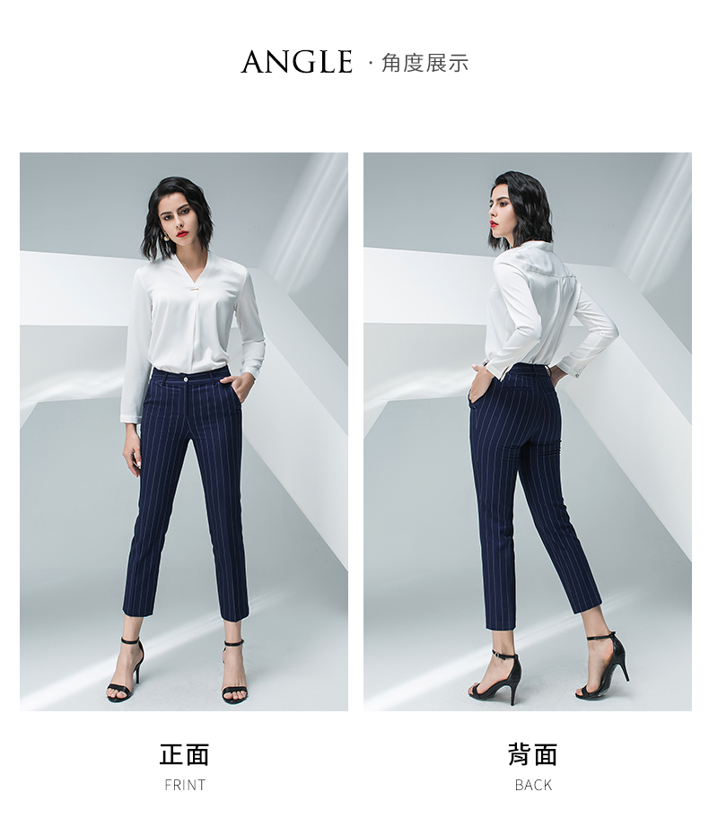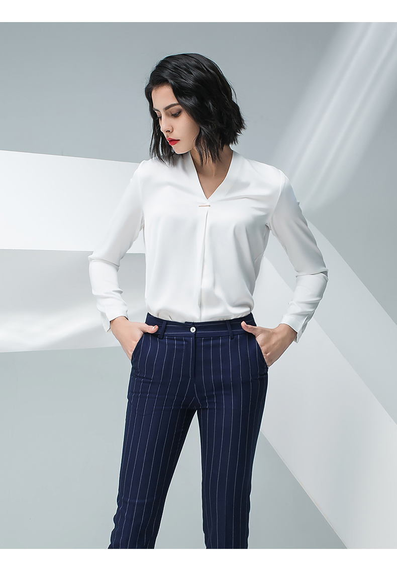 IWY/白色长袖衬衫蓝色条纹小脚裤套装BP871