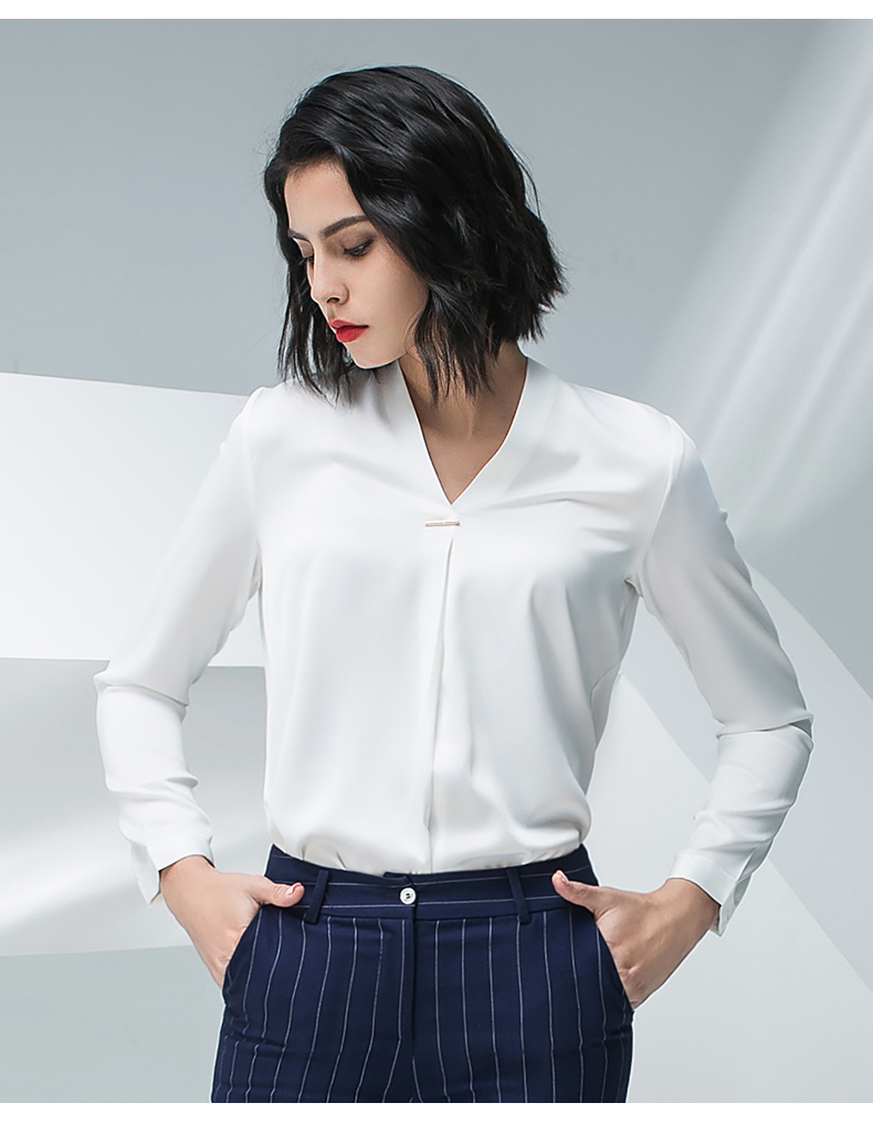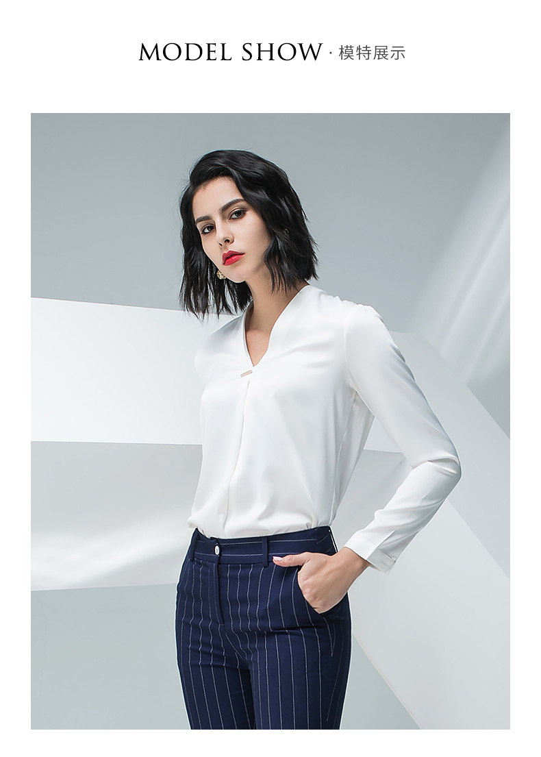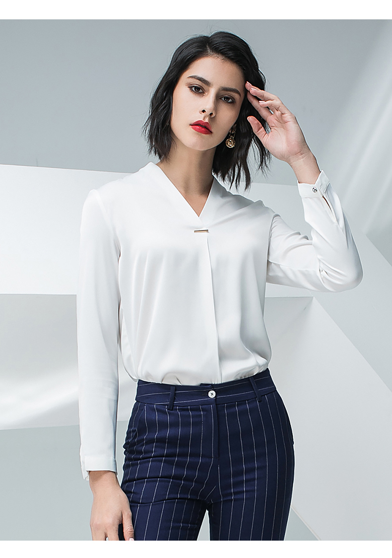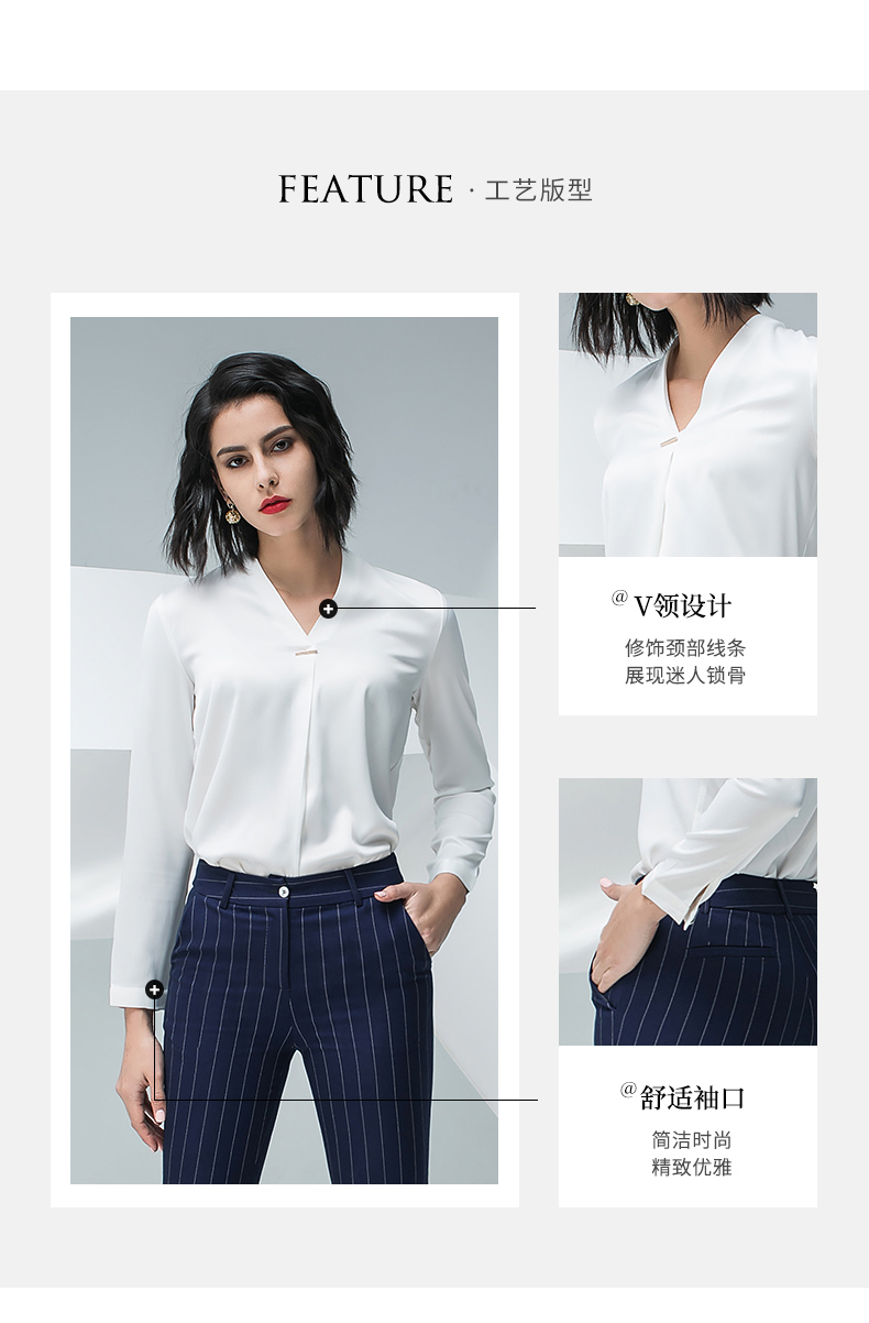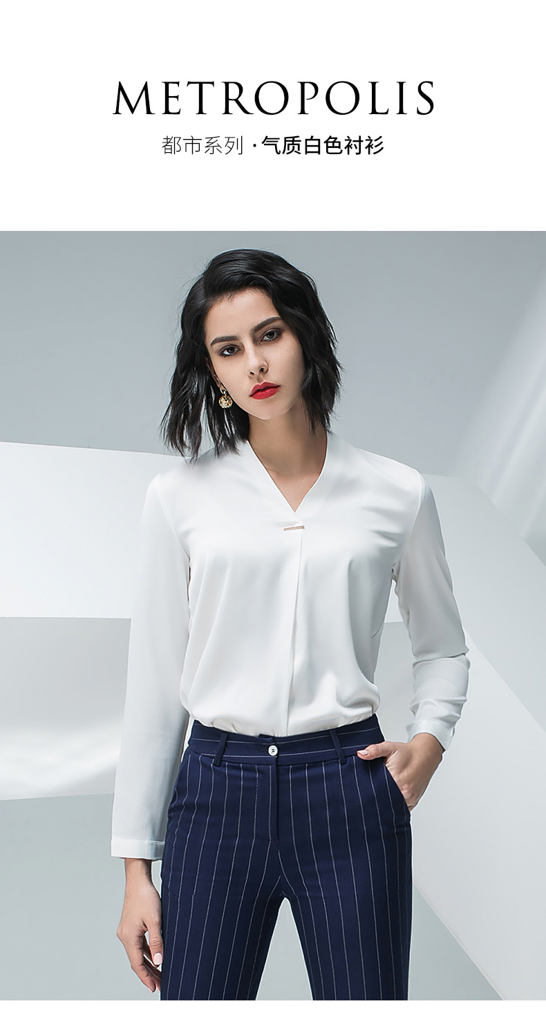 IWY/白色长袖衬衫蓝色条纹小脚裤套装BP871